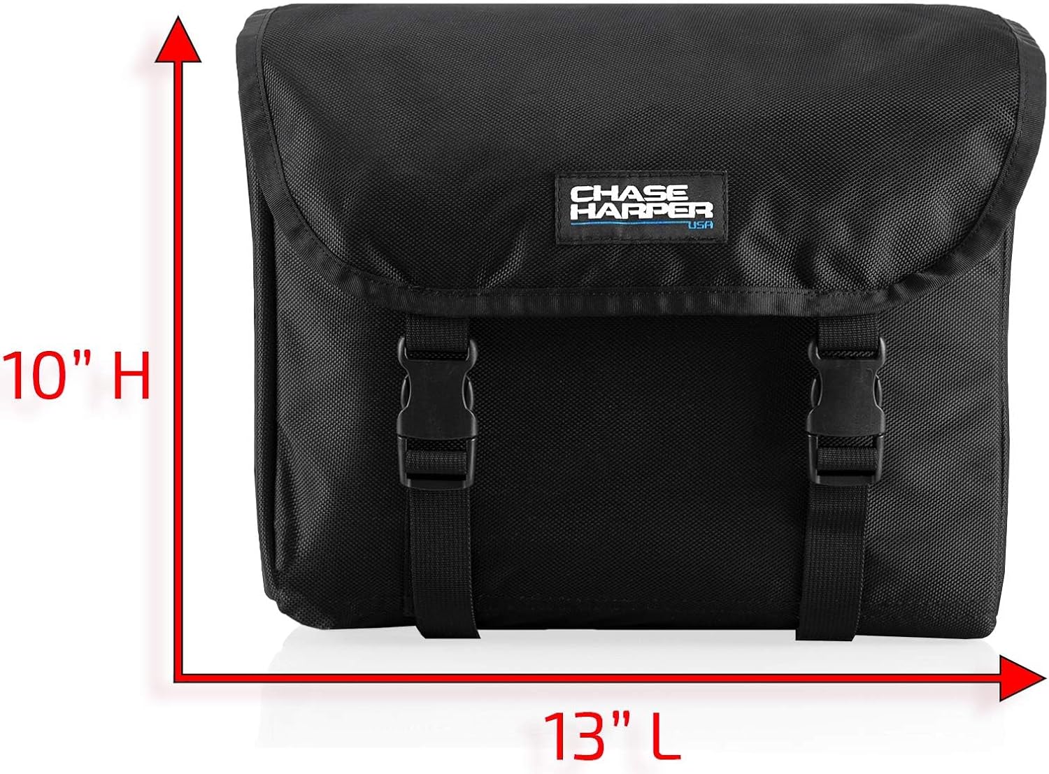 - Adjustable velcro strap mounting harness paired with traditional quick-release loop mounting system for a secure fit while enabling rapid mounting / dismounting. PLEASE NOTE: The strap mounting harness accommodates mounting areas up to 15” wide. If your mounting area is wider than 15”, Chase Harper USA saddle bag mounting harness extenders are available and can be found by typing/copy-pasting Item# B086XLJFHM into the Amazon search above