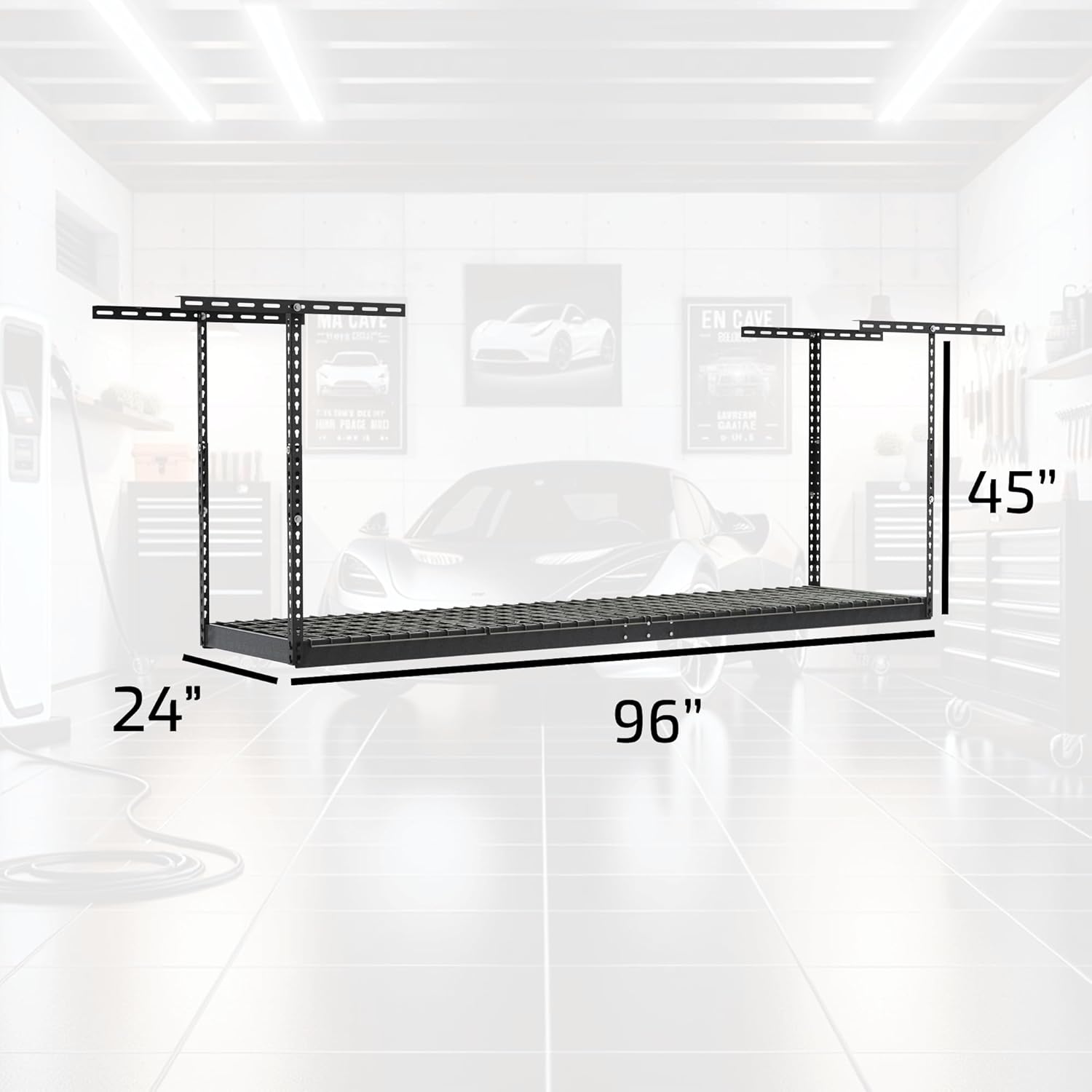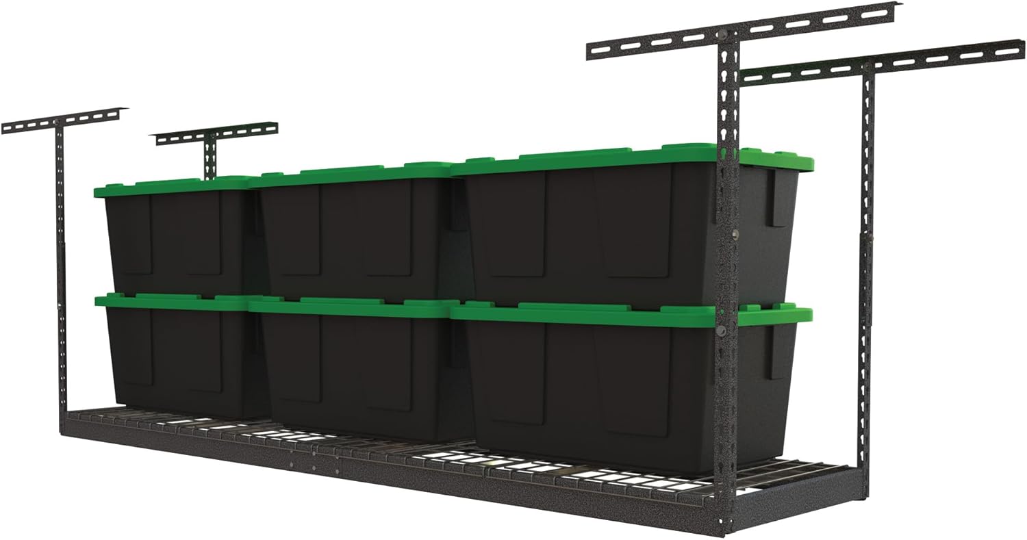 MonsterRax Overhead Garage Storage Rack 2x8, Ceiling Mounted Shelving, Adjustable Hanging Organizer, Heavy Duty Steel, 350 Pound Capacity, Color: Hammertone, Adjusts 24-45" from Ceiling