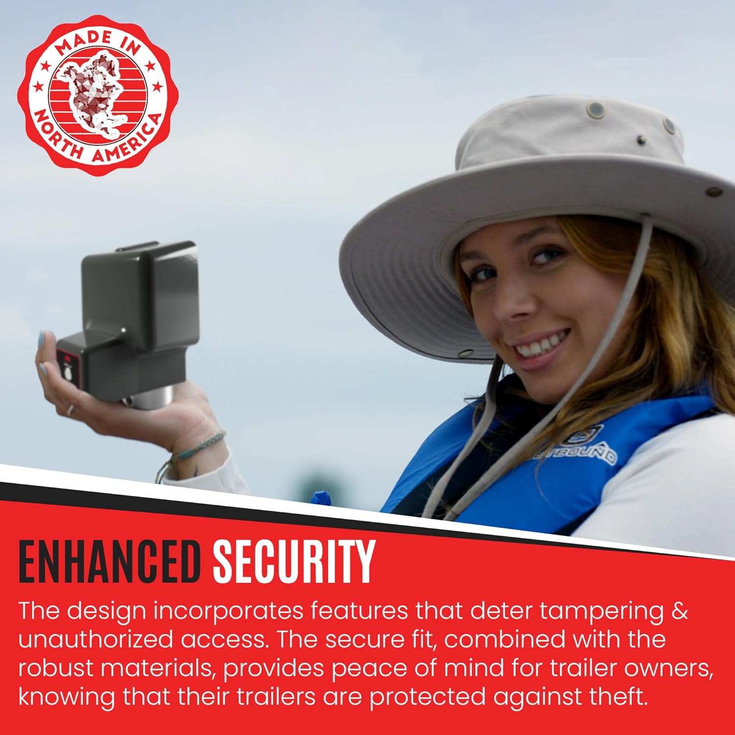 - RELIABILITY AND SECURITY: Make certain that your camping trailer and boat trailer lock with our precisely engineered lock. This car trailer accessories piece offers zero wobbling or loosening due to seamless, rock-solid integration with your trailer. Acting as an RV hitch lock, trailer latch lock, boat hitch lock, and trailer hitch accessories, it molds seamlessly to the trailer tongue coupler lock for a solid fortress-like security, giving confidence to trailer owners everywhere.