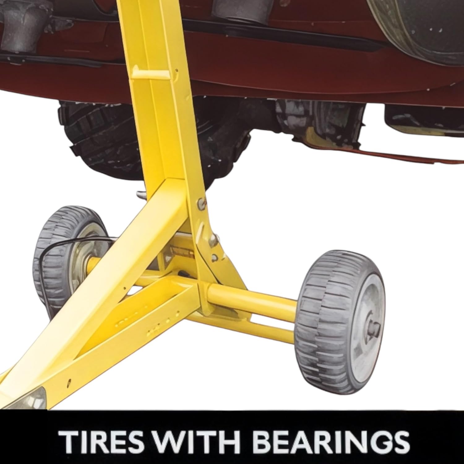 - Twist Handle Safety Arm for Secure Locking: Save time with the twist handle safety arm that locks the jack in place without needing to remove or reinsert pins. Perfect for stable and efficient blade changes, deck cleaning, and tire replacements.