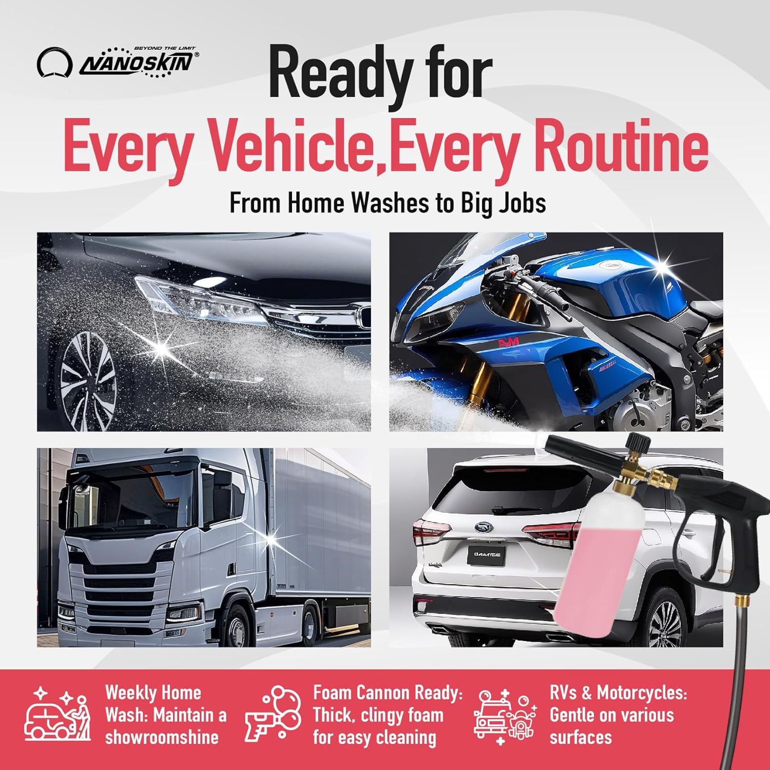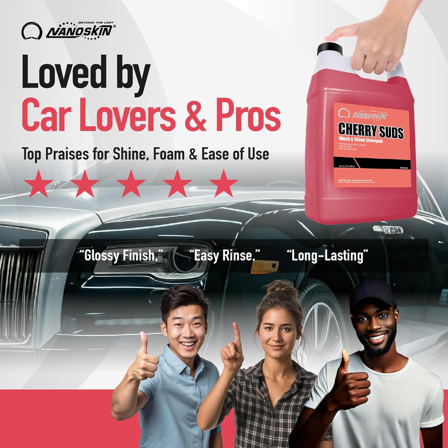 Nanoskin CHERRY SUDS Foaming Car Wash Shampoo 1 Gallon - Works with Foam Cannon, Foam Gun, Bucket Washes, Car Soap for Pressure Washer | Safe for Cars Trucks, Motorcycles, RVs & More | Cherry Scented