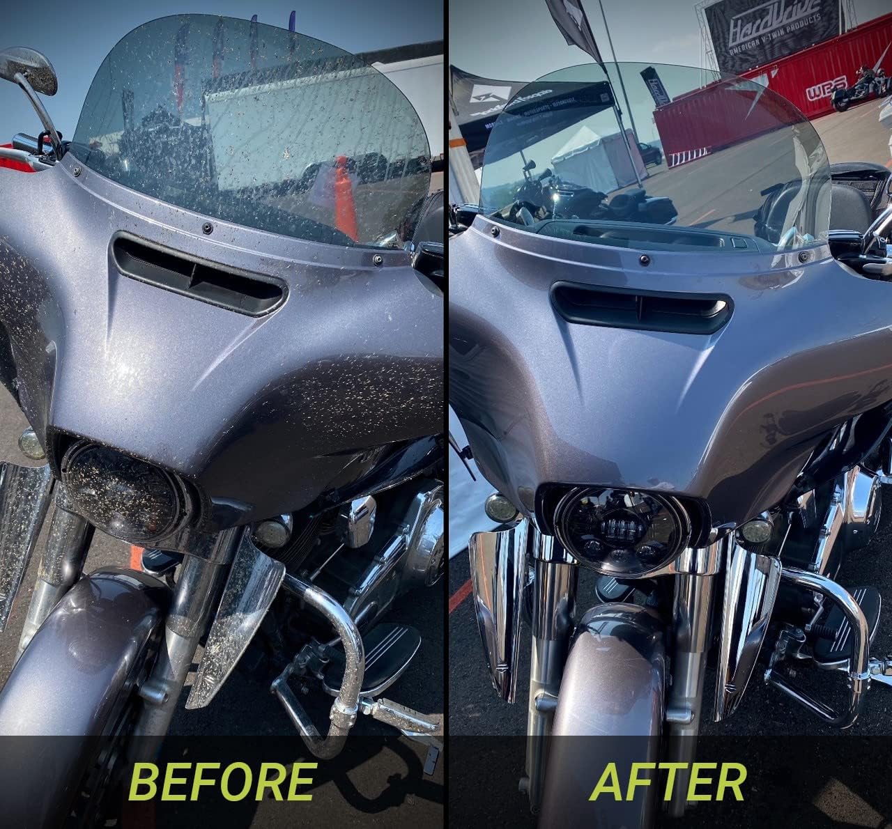 - Works on Multiple Surfaces – Bugslide's car cleaning solution is safe, all-purpose, and used to polish all non-porous surfaces including paint, chrome, glass, fiberglass, acrylic, aluminum, plexiglass, plastic, Lexan, vinyl, and leather. Works well on cars, RVs, campers, trailers, motorcycles, boats, ATVs and more.