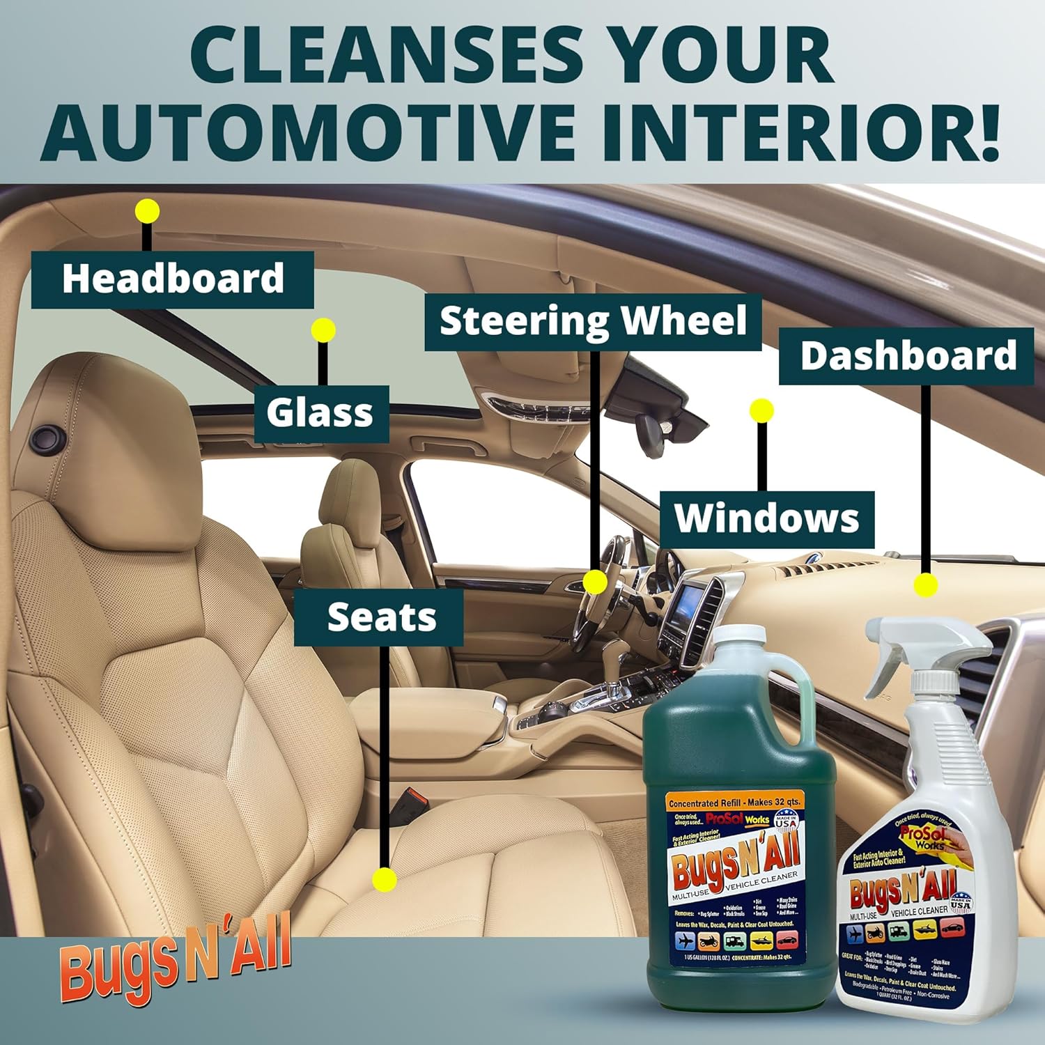 Bugs Nβ All Multipurpose Car Cleaner & Degreaser - Bug & Tar Remover Concentrate 1 Gallon - Exterior Cleaner Safe for Car Paint, Metal, Chrome, Aluminum, Windows & Mirrors - w/Free 32 oz Spray Bottle