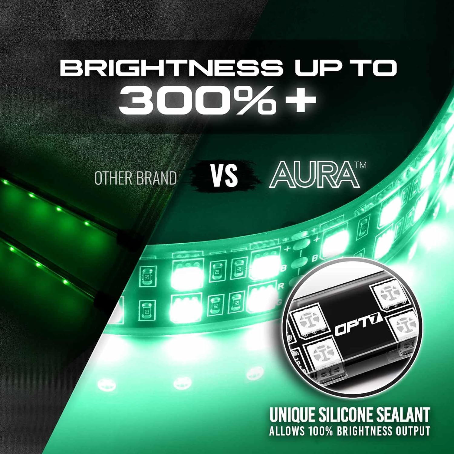 - [Double Glow] Stand out at your next car meet with OPT7’s exclusive double-row LED strips. Engineered for ultra-brightness, the premium LED strips deliver everything from chill blue vibes for relaxed drives to captivating party light effects that steal the spotlight.