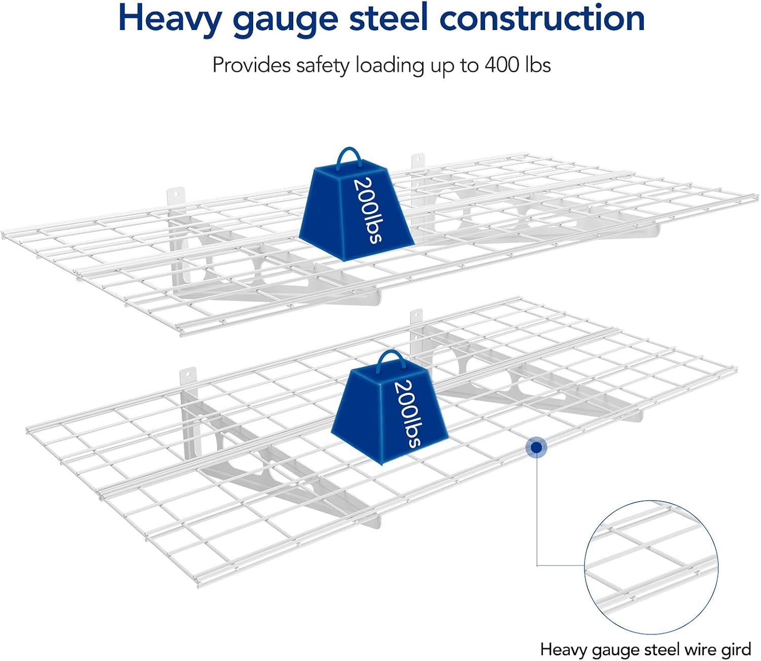 - High Load Capacity: Heavy gauge steel construction provides safety loading up to 400 lbs total.