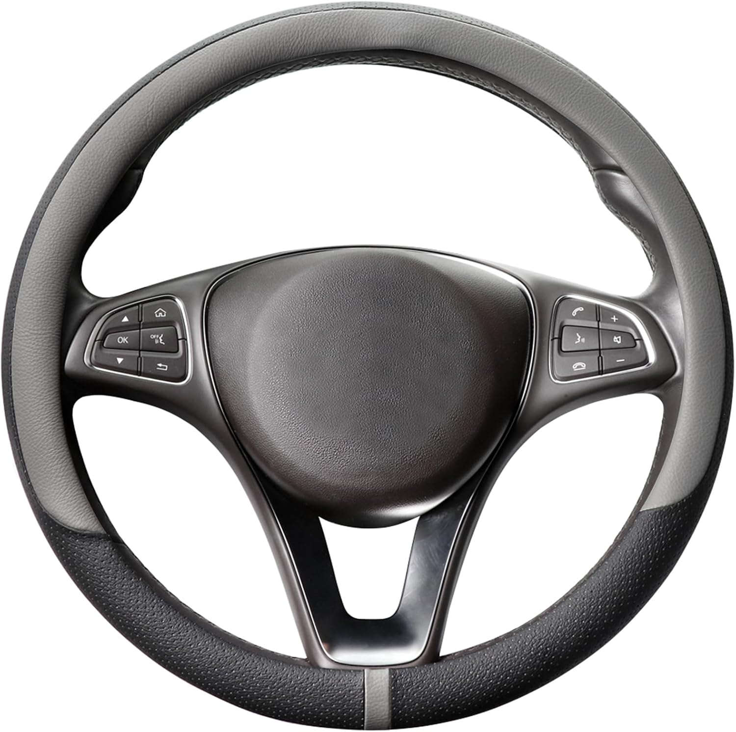 - Heavy-Duty Microfiber Leather Construction: Crafted from wear-resistant microfiber leather, this truck steering wheel covers withstands daily friction and sunlight exposure. Wipe clean in seconds with a damp cloth—no special cleaners needed. Its long-lasting design minimizes replacements, making it a practical upgrade for any vehicle