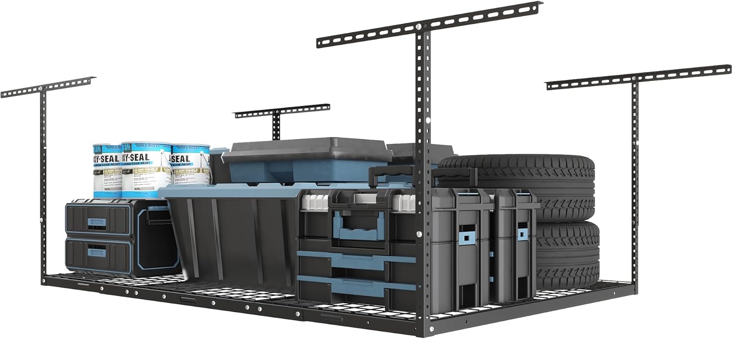 FLEXIMOUNTS 4x6 Overhead Garage Storage Adjustable Ceiling Rack 72" Length x 48" Width x 40" Height, 450lbs Weight Capacity, Black