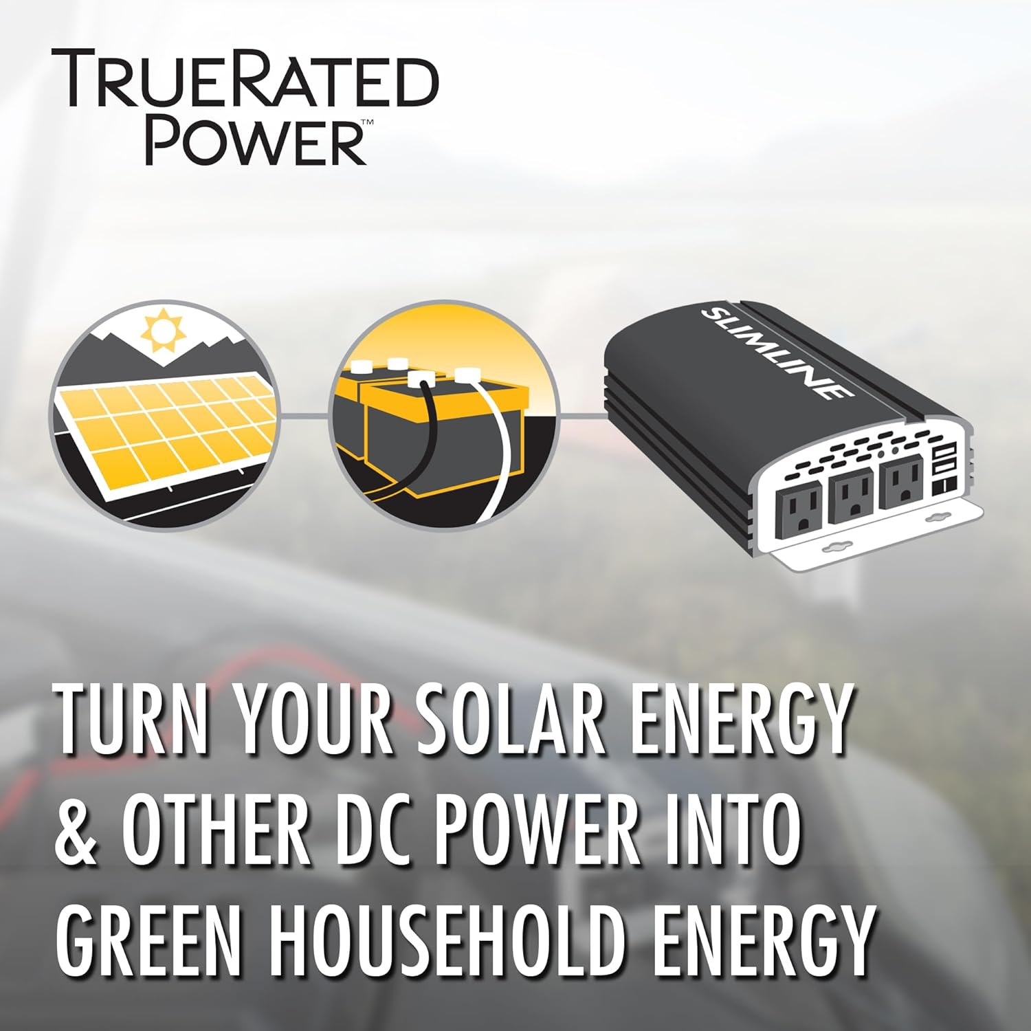 - 【ENGINEERED TO PERFORM】 - In your vehicle, boat, motorcycle, RV, truck, RV, motorhome, campground, kids soccer games or anywhere you need to convert DC (battery) power to AC (household) power is where the SlimLine inverter will shine!