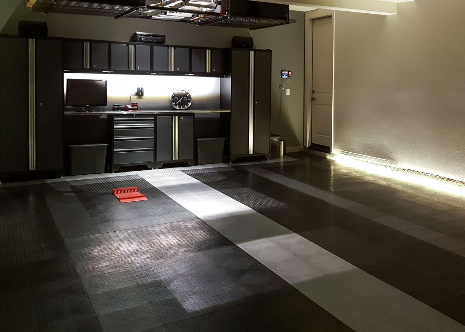 - These interlocking tiles are easy to clean and won’t stain. Whether you’re showcasing your cars or working with tools, these tiles will provide a premium & protective floor for your man cave.