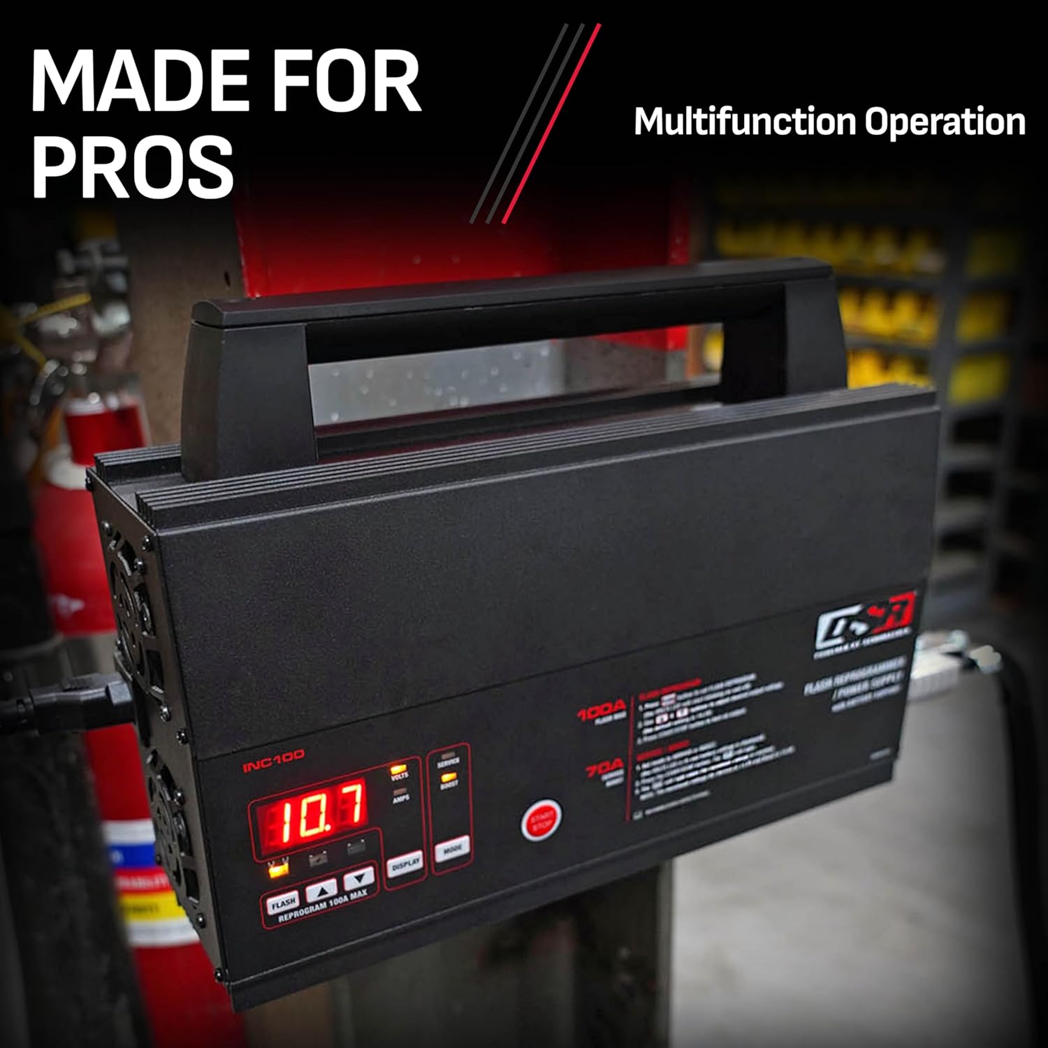 - Flash Reprogram Mode - For major vehicle ECU reprogramming, provides constant power output of up to 100A during the process; User can select desired voltage