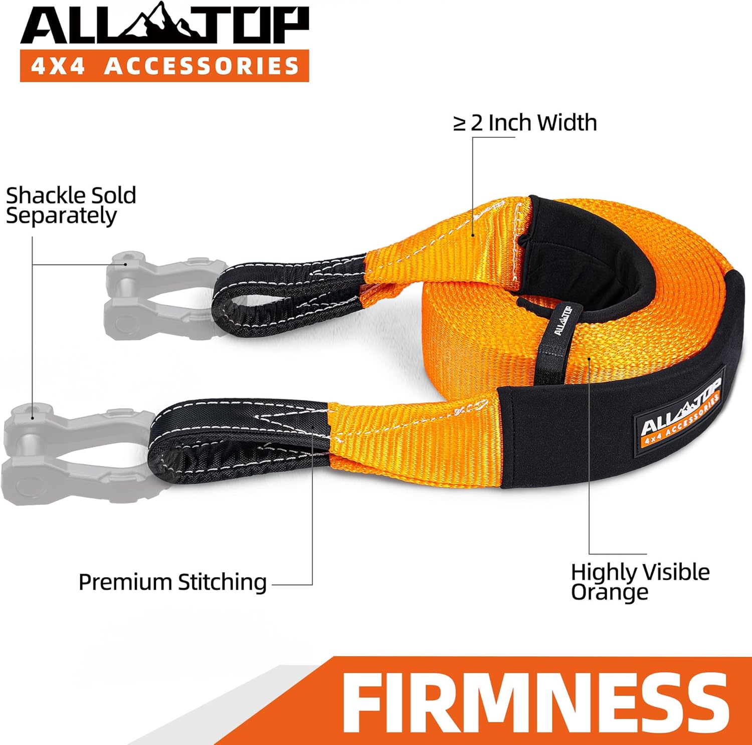 - 【RECOVERY MUST-HAVE】ALL-TOP Recovery Strap is the most convenient, cost effective, reliable overlanding gear you should have to safeguard your off-road trips. Unlike most other branded Tow Straps, ALL-TOP Towing Recovery Straps are made of 100% Nylon Webbing with Premium Stitching, providing genuine 22% elasticity for you to feel the Kinetic Snatching Force.