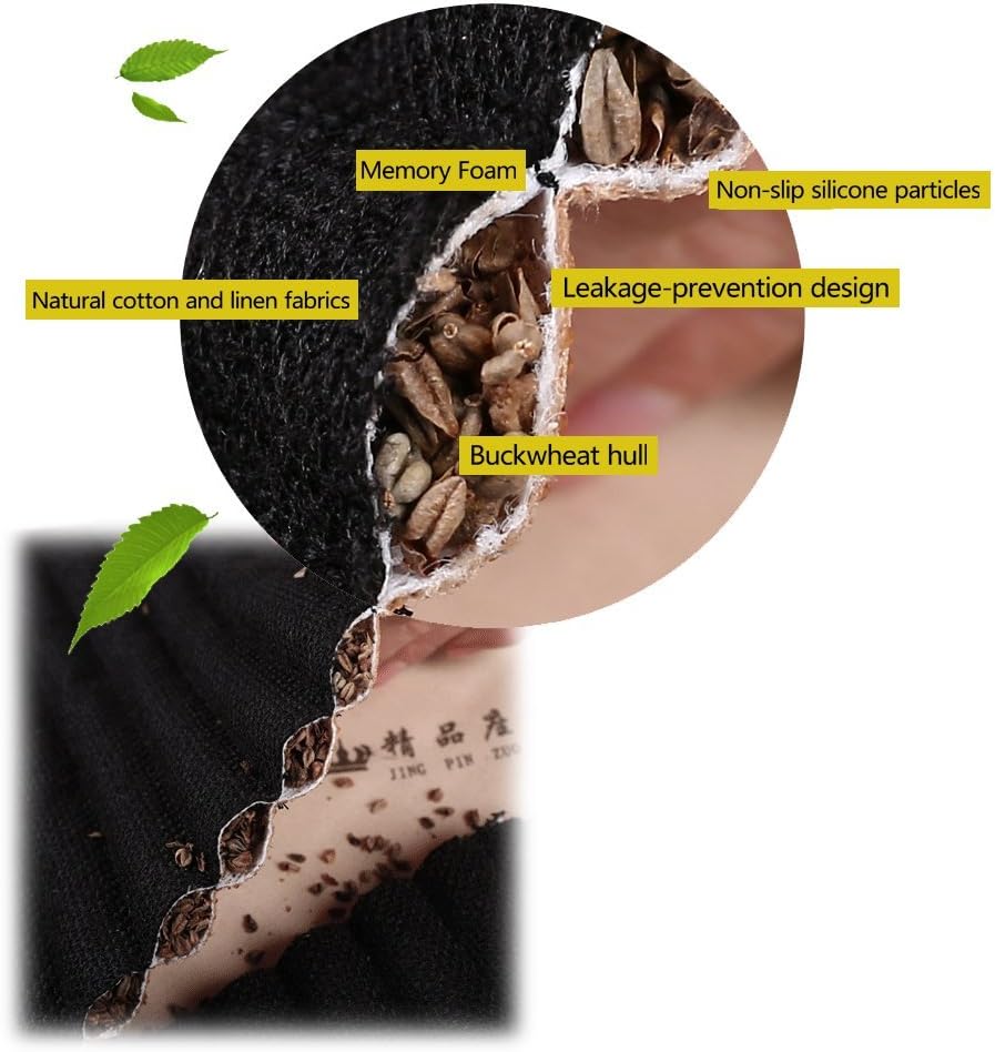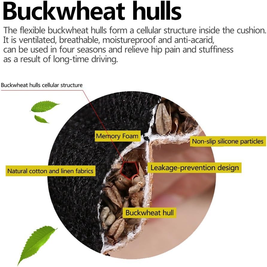 - We use the best buckwheat hulls to fill the car seat cushion. It is pollution-free, pure, odorless, chemical-free, green and eco-friendly. The flexible buckwheat hulls form a cellular structure inside the cushion. It is ventilated, breathable, moistureproof, can be used in four seasons and relieve hip pain and stuffiness as a result of long-time driving.