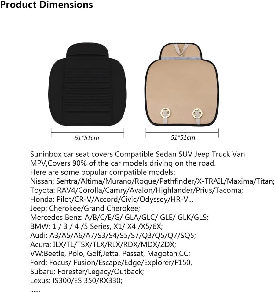 - Suninbox car seat cover perfectly fits small,compact,medium-sized Satchback,Sedan,SUV,MPV and trucks...Covers 96% of the car models driving on the road.