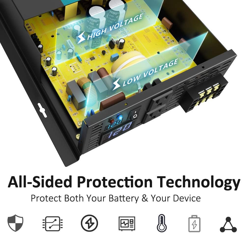 - Reliable performance -- the 4000W Power inverter is equipped with extra thick (2.0mm) PCB which greatly enhances the load capacity of the inverter.