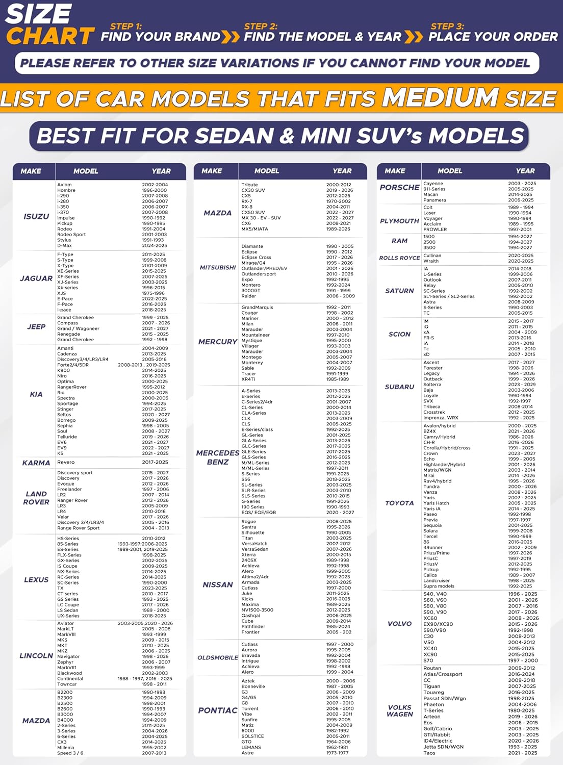 - Vehicle Service Type Coupe, Hatchback, Mid Size SUV, Sedan : Material 240T Polyster