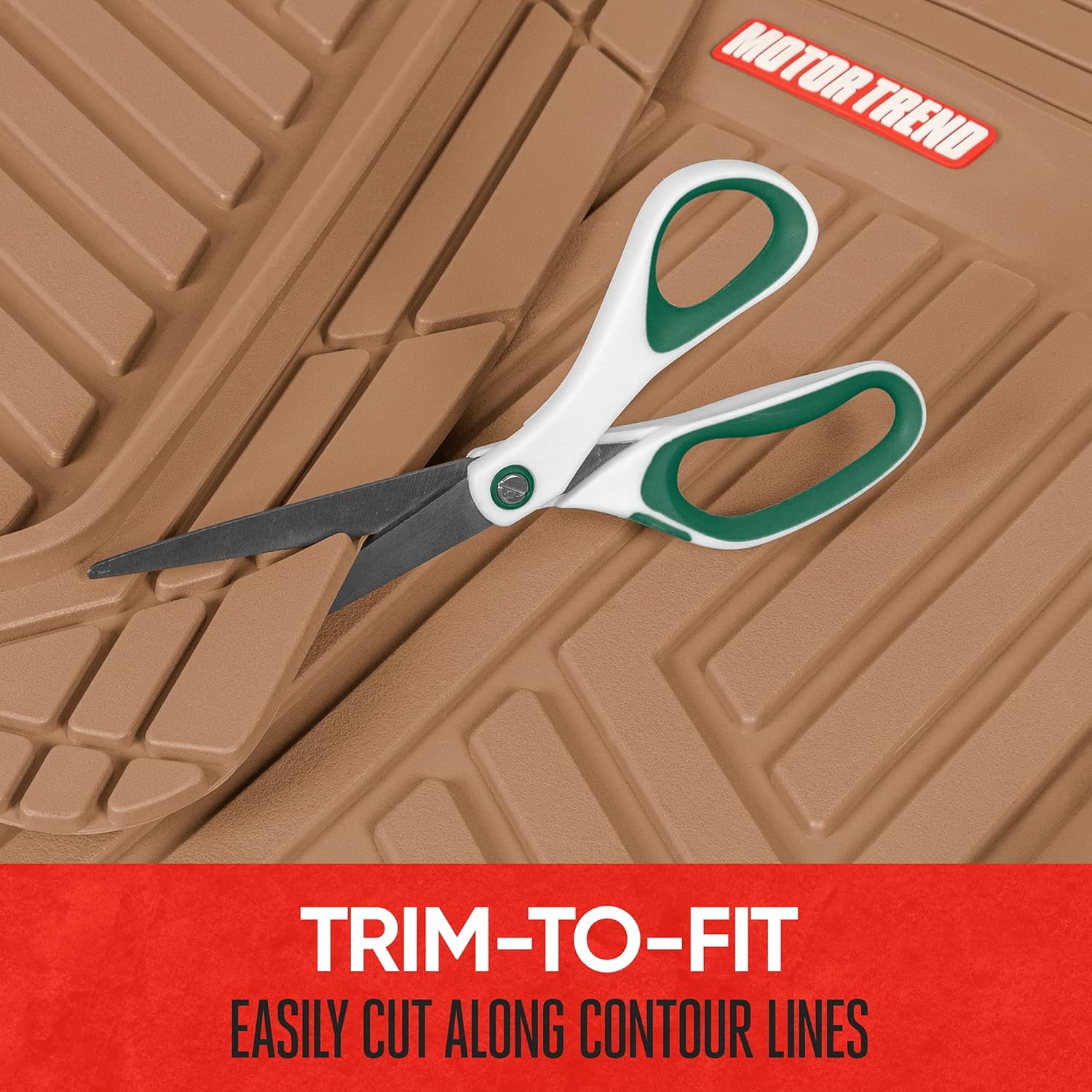 Motor Trend FlexToughXL Floor Mats for Cars Full Set, All-Weather Rubber Automotive Floor Mats, Waterproof Heavy Duty Car Mats, Flexible Floor Liners for Car Truck Van SUV, Car Floor Mats (Beige)