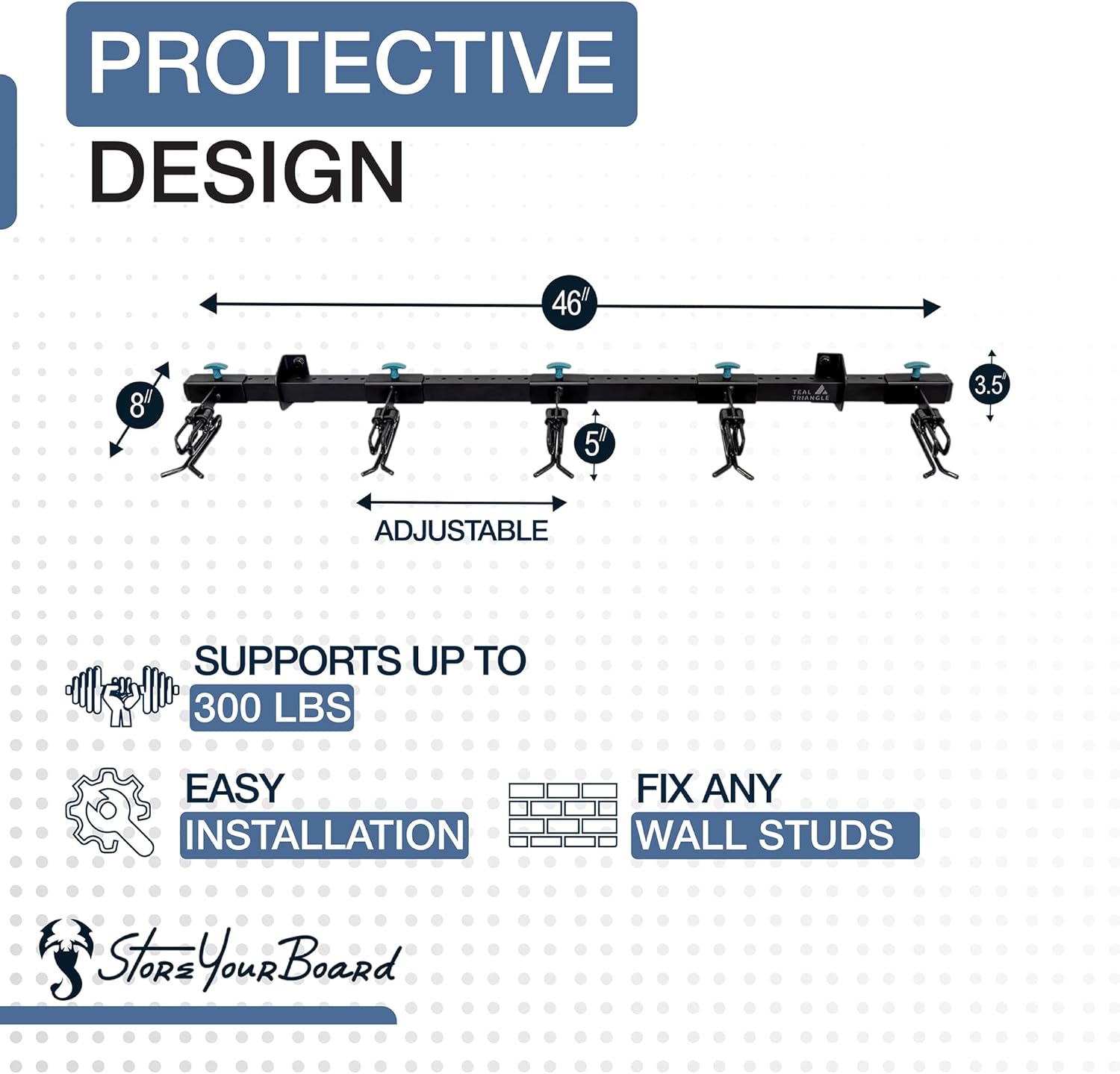 - INDUSTRIAL GRADE: Solid steel and aluminum support up to 300 lbs total, up to 25 lbs per ski storage attachment.