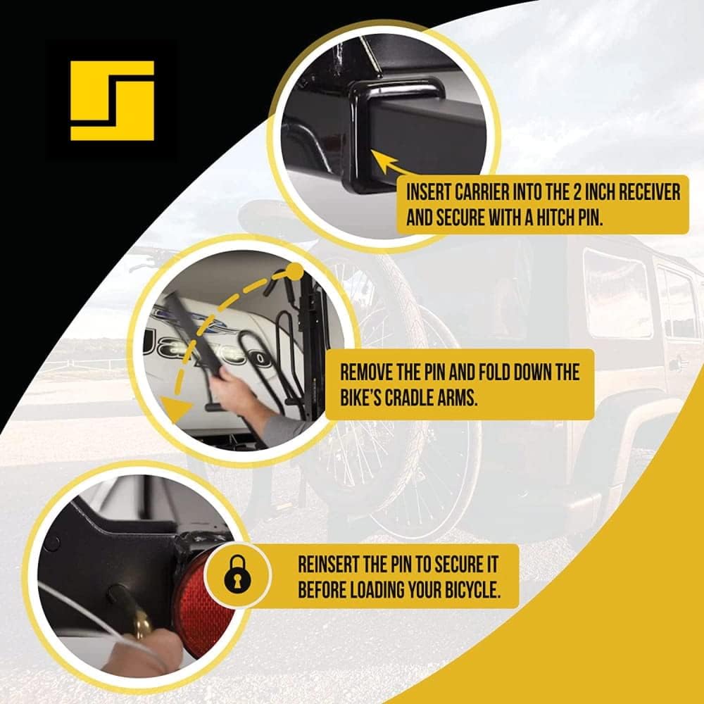- DURABLE & SECURE CONSTRUCTION - Crafted with a heavy-duty steel frame and zinc-plated hardware, this bike rack for car hitch is ready to handle up to 80lbs of weight. Enjoy secure transportation of your bikes without worrying about reliability or safety.