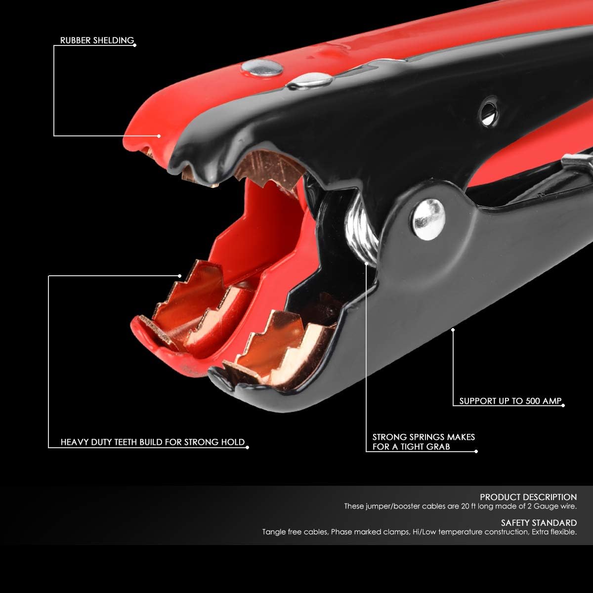 Auto Dynasty Heavy Duty 20Ft 2Gauge Booster Cable Power Jumper 600AMP Emergency Battery Start Car/Motorcycle