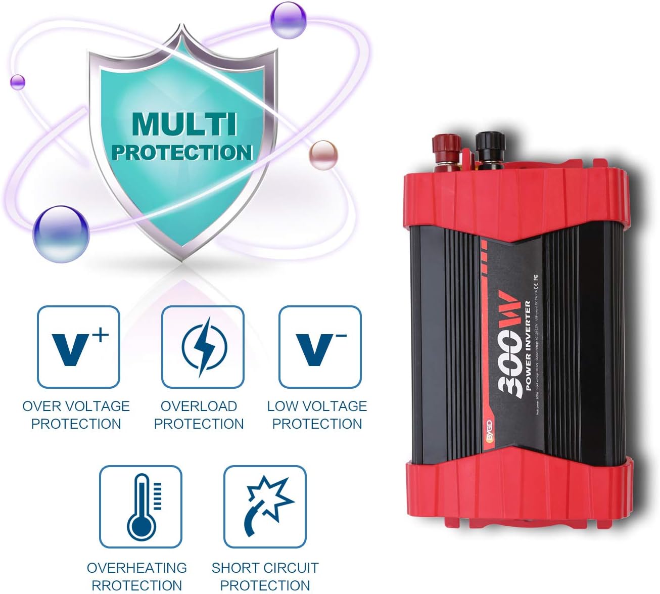 - ✔️【PROFESSIONAL SERVICE】: BYGD China Well-known Listed Company, The leading power inverter brand. We provide 18-month warranty. 24 HOUR-7DAYS full covered customer service ensure that you have no need worry about after-sell service. Please be free to contact us anytime If our product did not meet your expectation