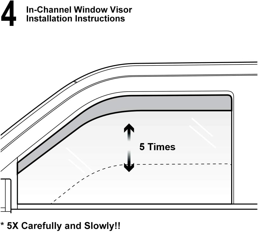 - Style: In Channel Type Side Window Visors Deflectors (Stick on the inside of the window channel)