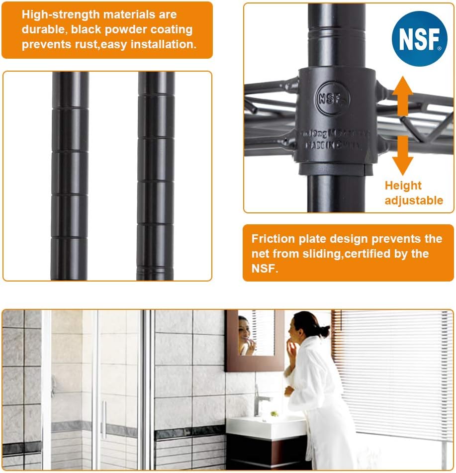 - âăMULTIFUNCTIONALă: This metal shelf is suitable for a wide range of applications.You can use this storage shelves in a variety of places, such as the bathroom kitchen garage.Tools, books,clothes,bag and other things can be placed on this wire shelving unit.metal shelf storage shelves wire shelving unit.