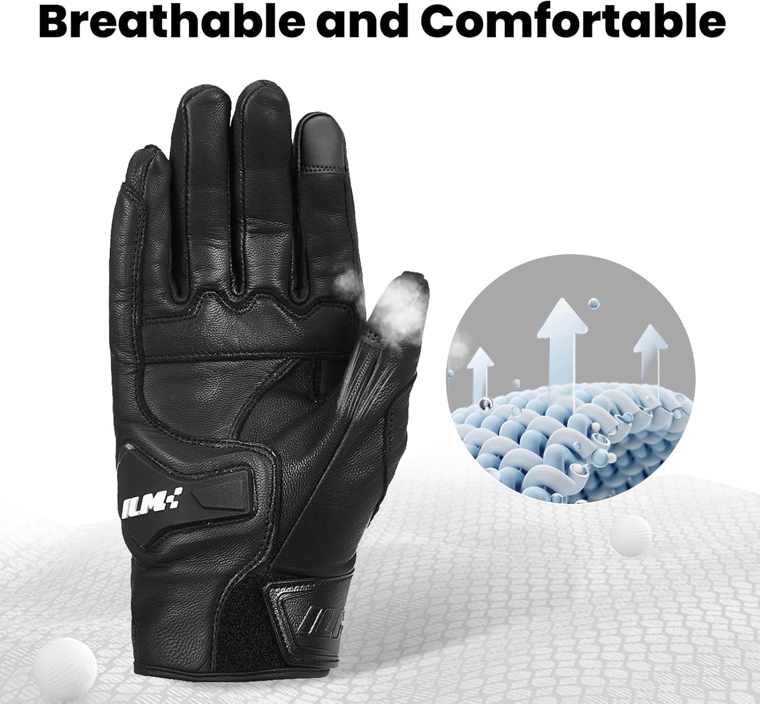 ILM Goatskin Leather Motorcycle Motorbike Powersports Racing Gloves Touchscreen for Men and Women Model DN01(XXL, Black Unperforated)
