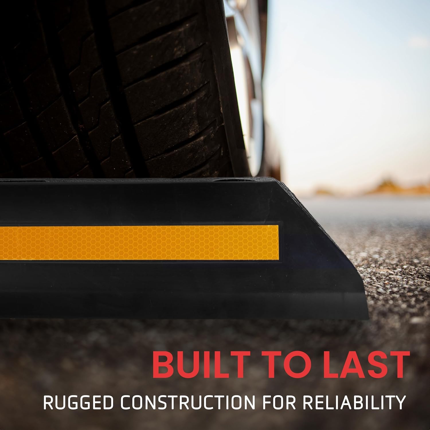- HEAVY DUTY: These single garage stoppers for your vehicle feature heavy duty curb tire construction from high quality rubber material w/ strong compression and resistance. Rubber parking blocks stay in place perfectly than any concrete or wood stop