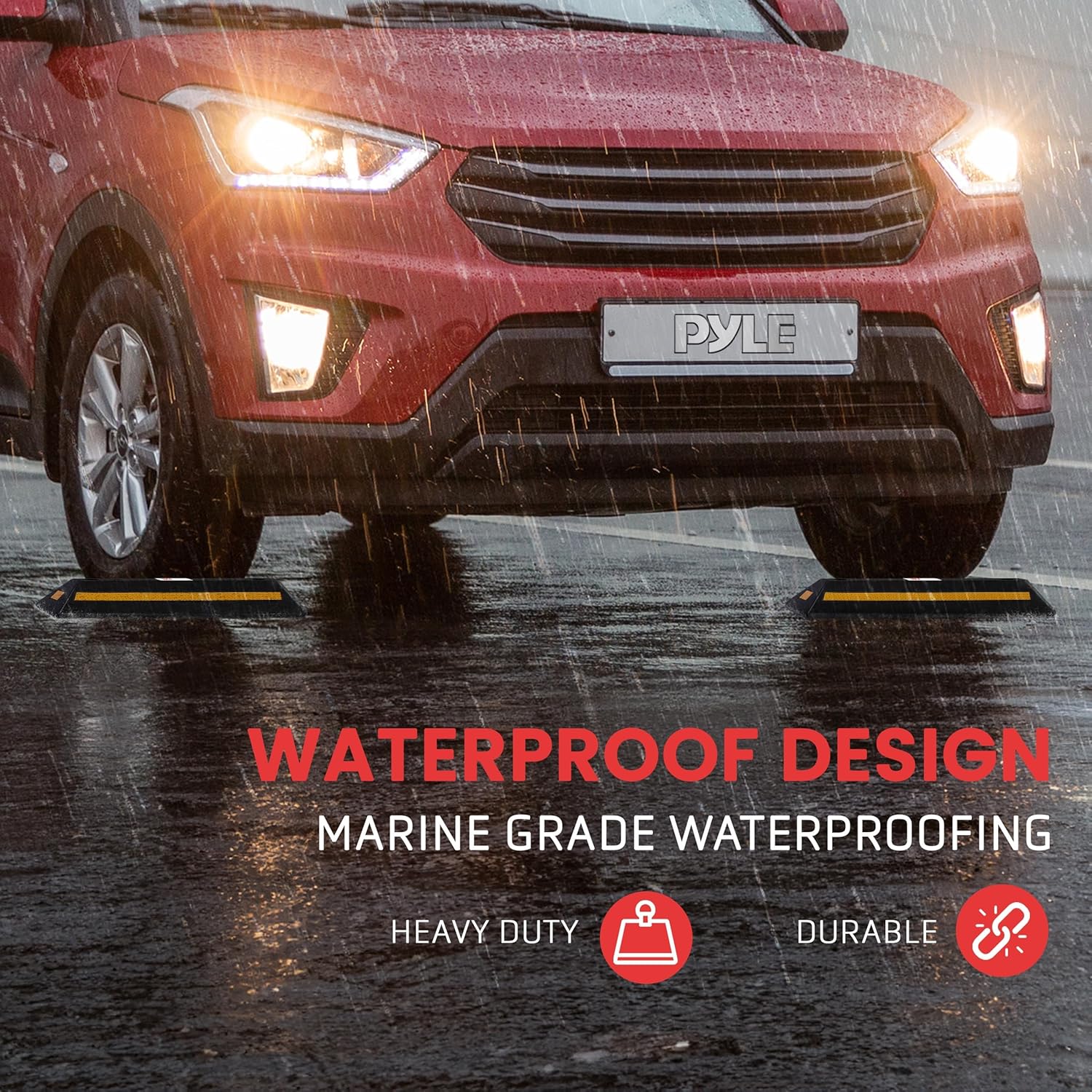 PYLE Garage Floor Stops for Vehicles - 2PC Heavy Duty Rubber Vehicle Parking Lot Target Stoppers, Truck Curb Tire Wheel Guide Blocks, Car Park Aid Assist Bumpers/Stopper for Driveway Stop -PCRSTP22