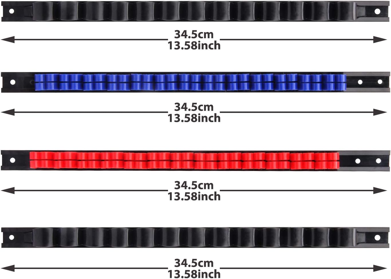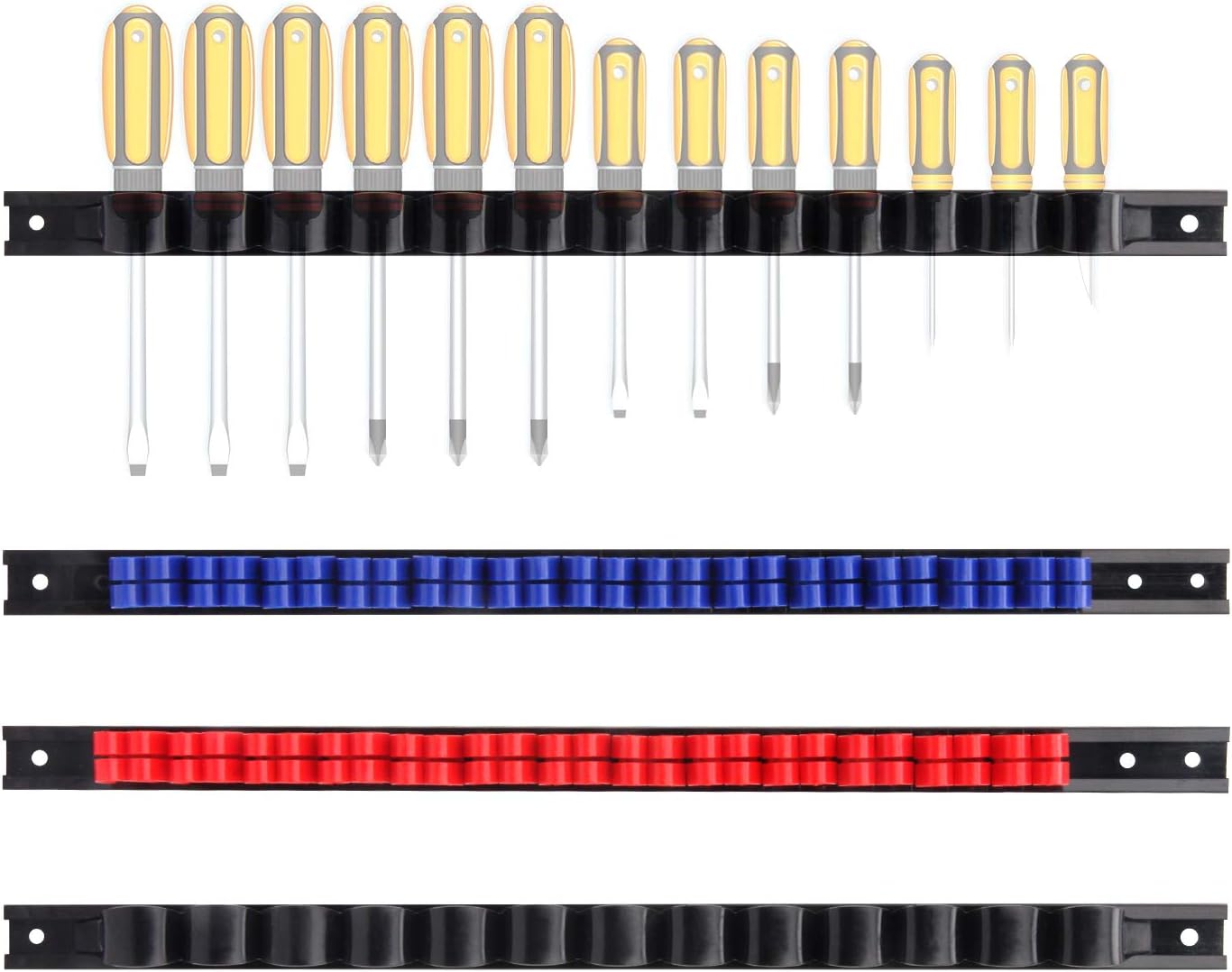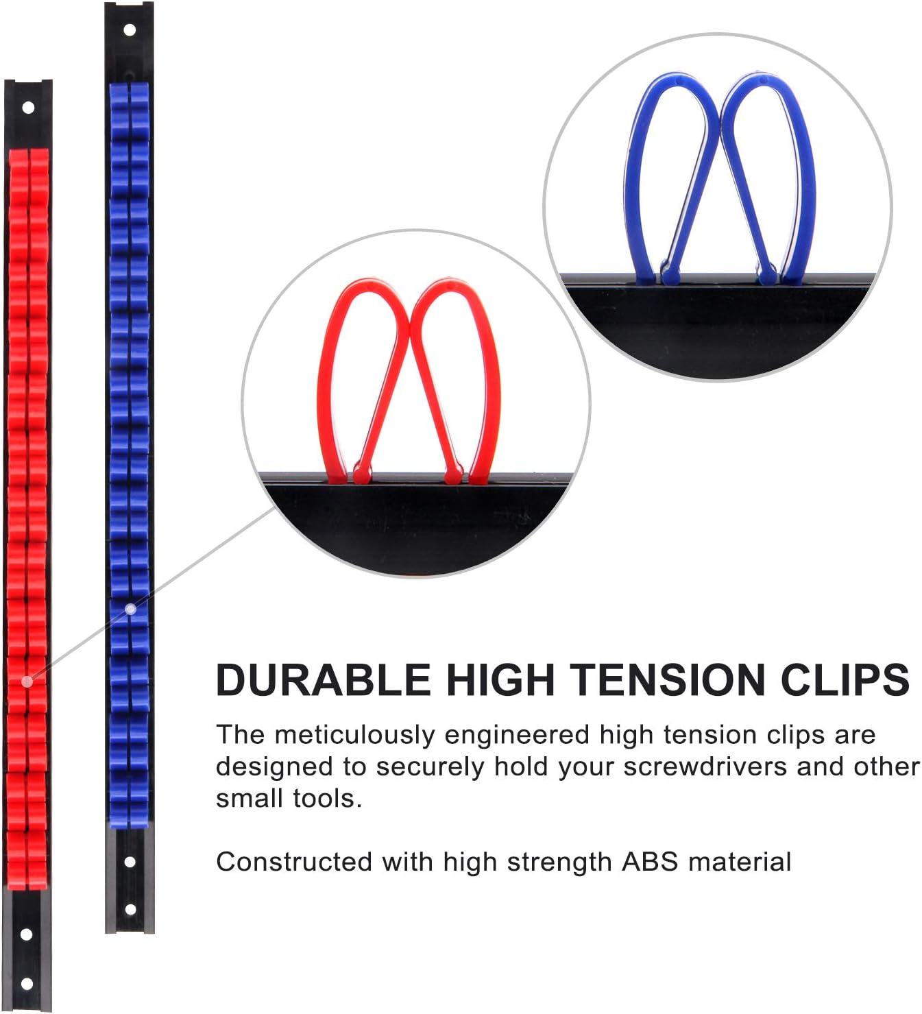 - Set includes 2 pcs screwdriver rails with 13pcs red clips and 13pcs blue clips and 2 pcs wrench rails with 26pcs black clips