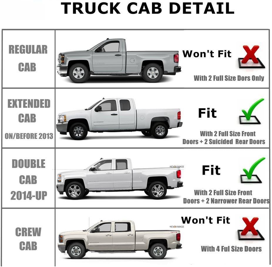 - Window Visor Compatible with 2014-2018 Chevy Silverado/GMC Sierra 1500/2015-2018 Chevy Silverado/GMC Sierra 2500 HD/3500 HD Double Cab (AKA Extended Cab) With 2 Half Size Rear Doors Only