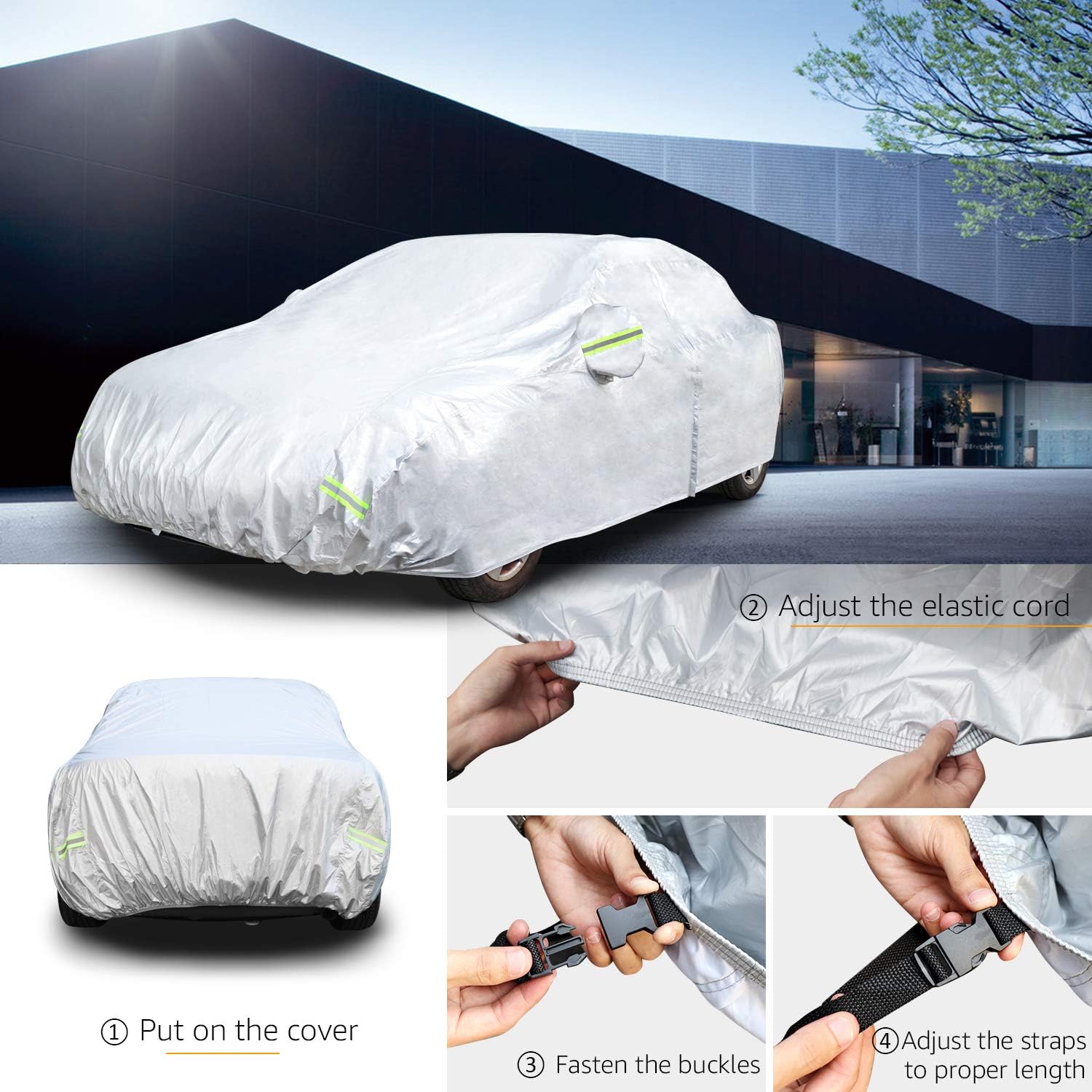 - NOTE: Only a cover that is longer than your sedan fit your sedan, this cover is 200 inch long; Not compatible with vans, SUVs, hatchbacks, or sports cars with long hoods.