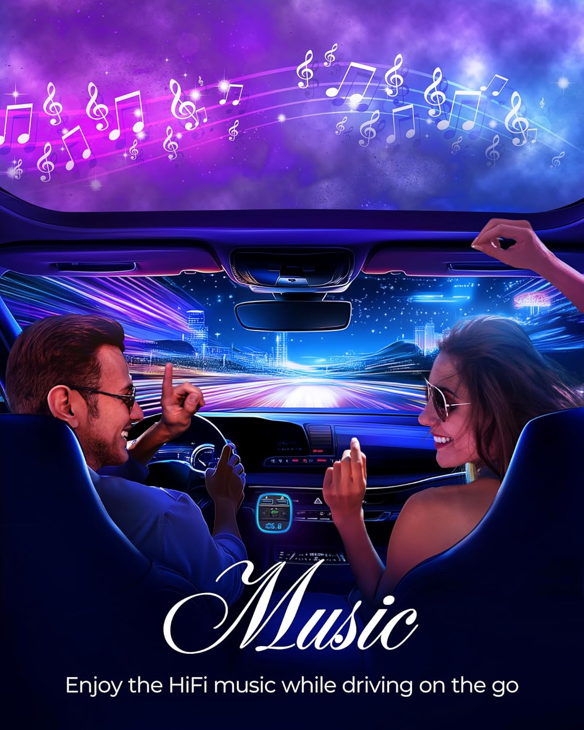LENCENT FM Transmitter, Bluetooth FM Transmitter Wireless Radio Adapter Car Kit with Dual USB Charging, Audio Receiver Car Charger MP3 Player, Support Hands-Free Calling, TF Card & USB Disk