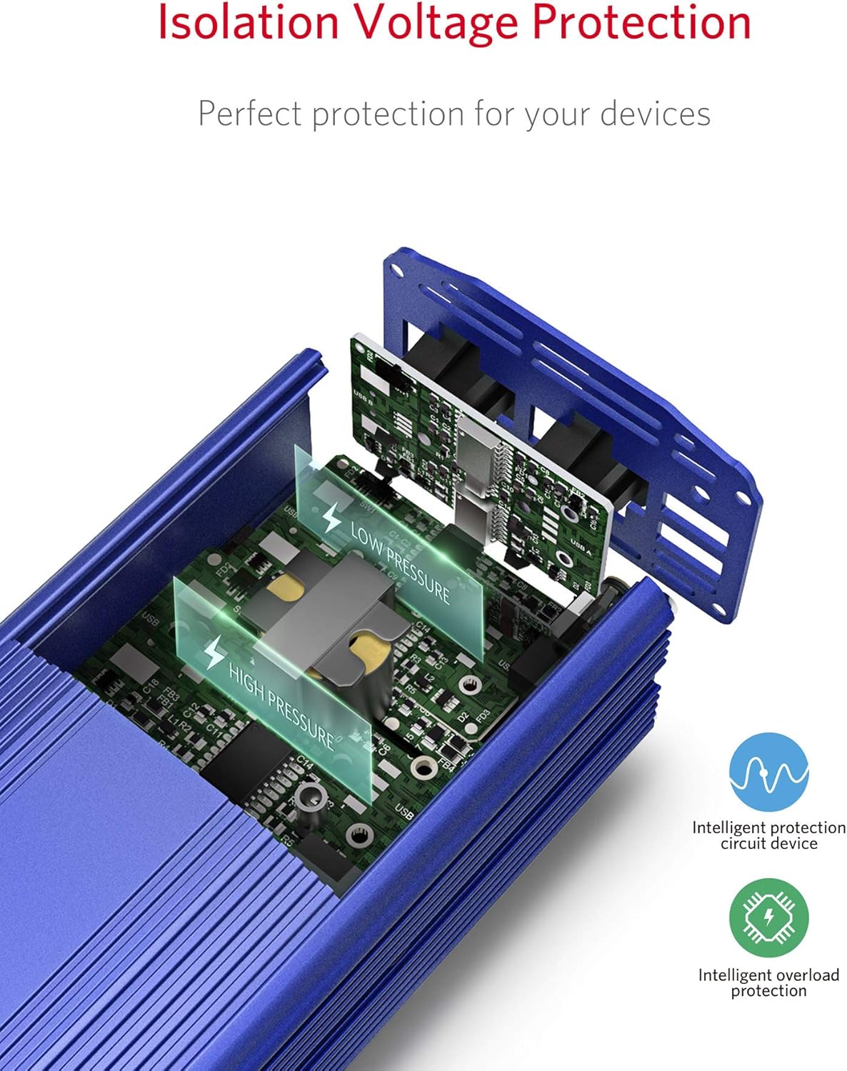 - Quiet cooling fan: The smart cooling fan will automatically rotate at different speed according to power load and temperature, this design can help to reduce the fan noise.Also the high speed cooling fan protect the inverter against overheating.