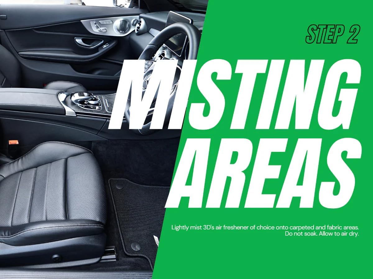 - Long-Lasting, Non-Staining Water-Based Formula: 3D’s water-based spray delivers a lasting scent without sticky residue or stains on fabrics, dashboards, or upholstery. Just spritz and enjoy the freshness—no cleanup needed