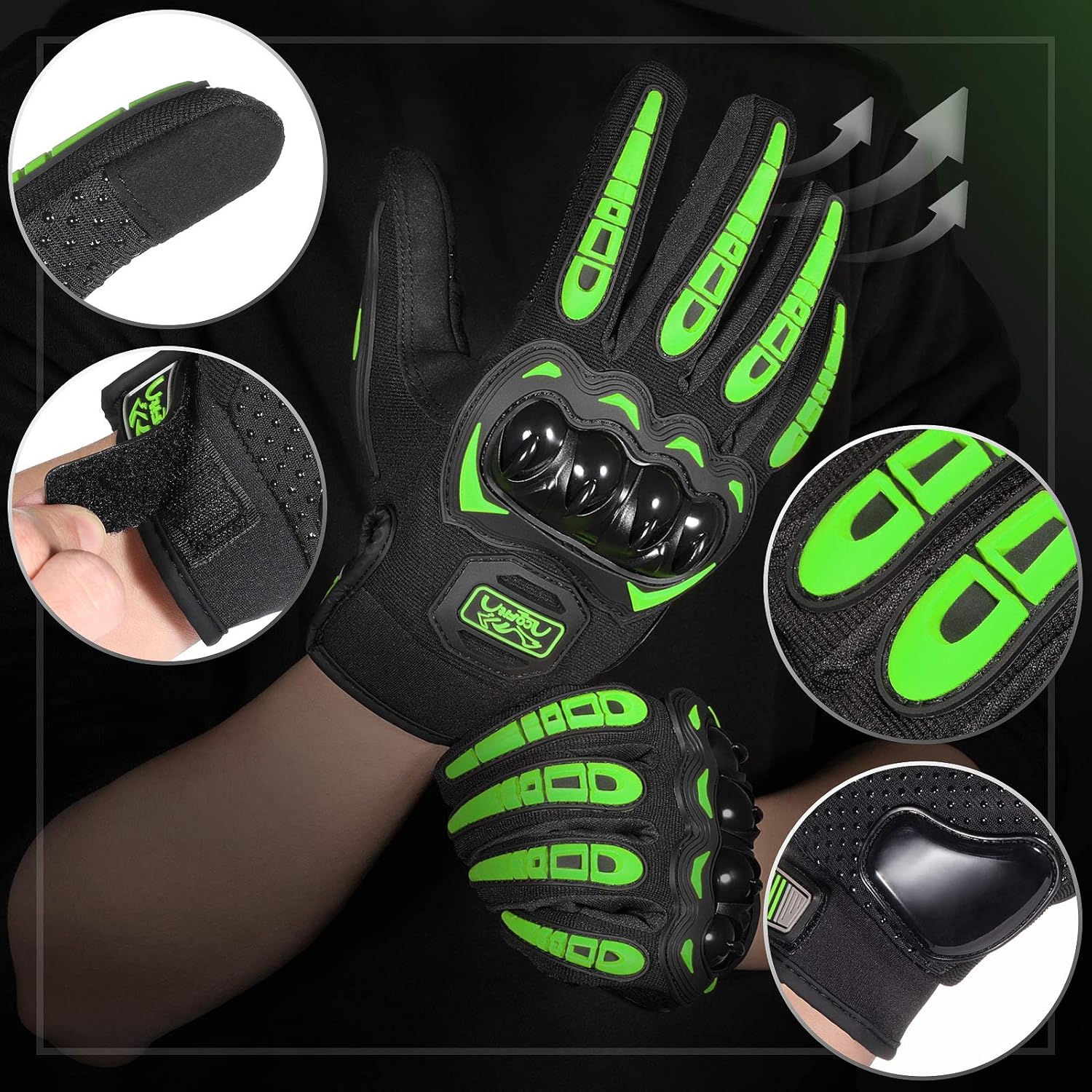 COFIT Motorcycle Gloves Breathable, Touchscreen Motorbike Gloves Anti-Slip with Good Grip Hard Knuckles Protection for Men Women Motocross, BMX ATV MTB Cycling, Road Racing - Green M