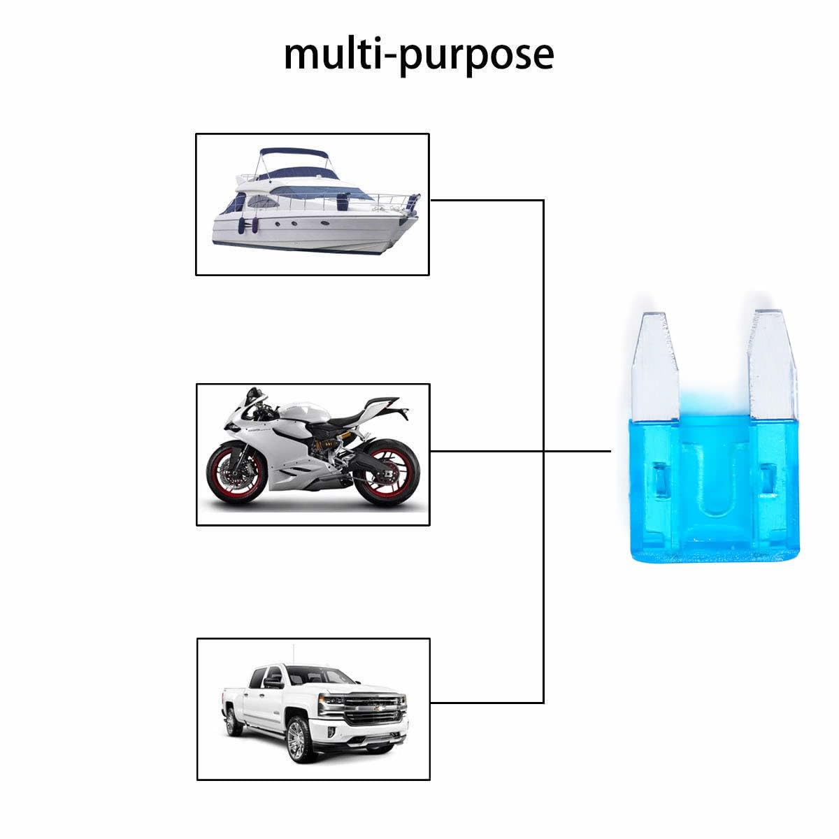 • WIDELY USE - These assorted fuses are specifically designed for Cars, Trucks, SUVs, ATVs, UTVs, Camper RV, Motorcycles, Fleet, Golf Car, Boat, snowmobiles, and most general DC applications etc., covering such components as radio, light, turn signals, etc.