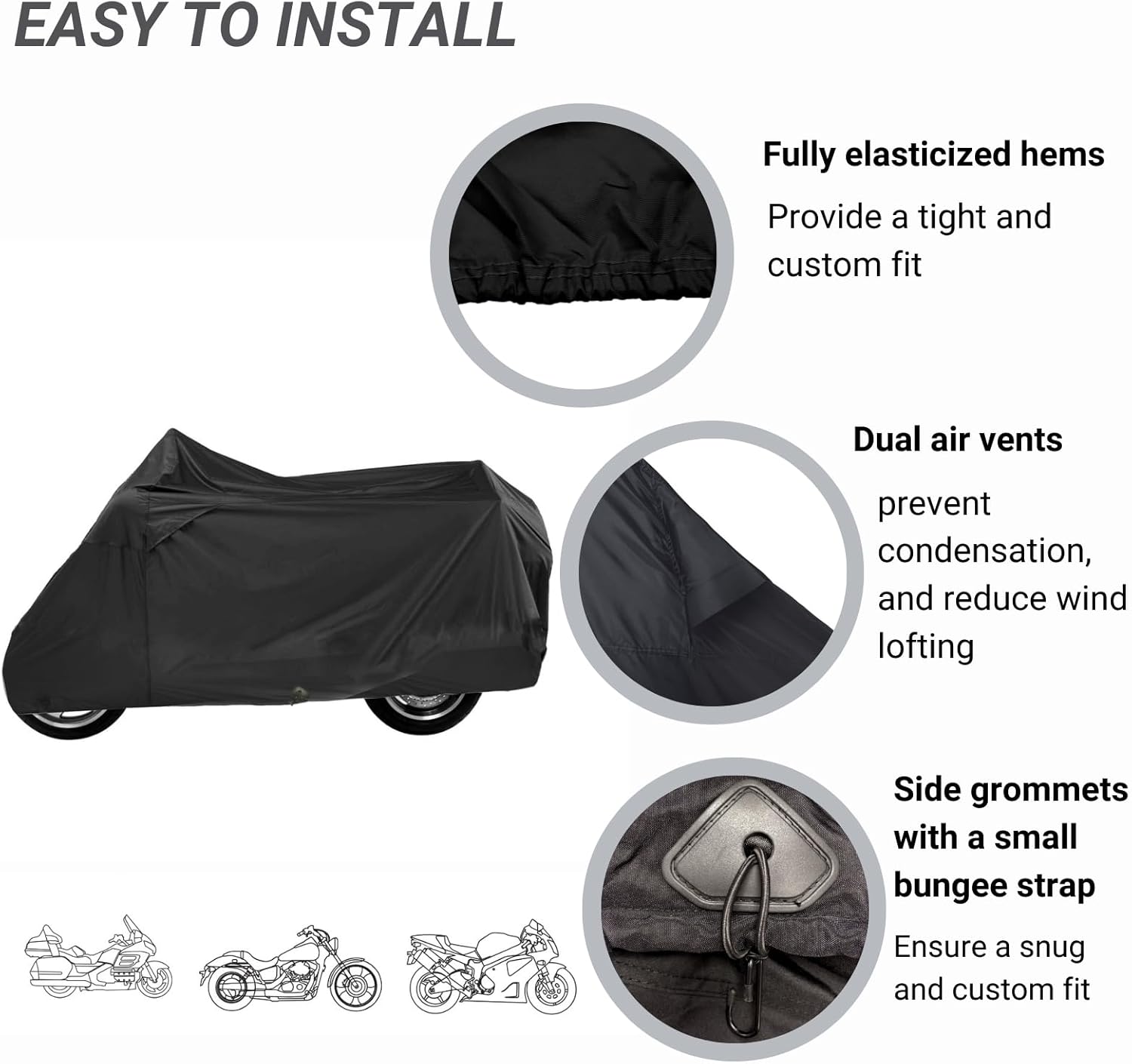 Deluxe Motorcycle Cover, Waterproof All Weather Outdoor Protection Universal Motorcycle Cover, Fade & Tear Proof Polyester fits Motorbike up to 97" L