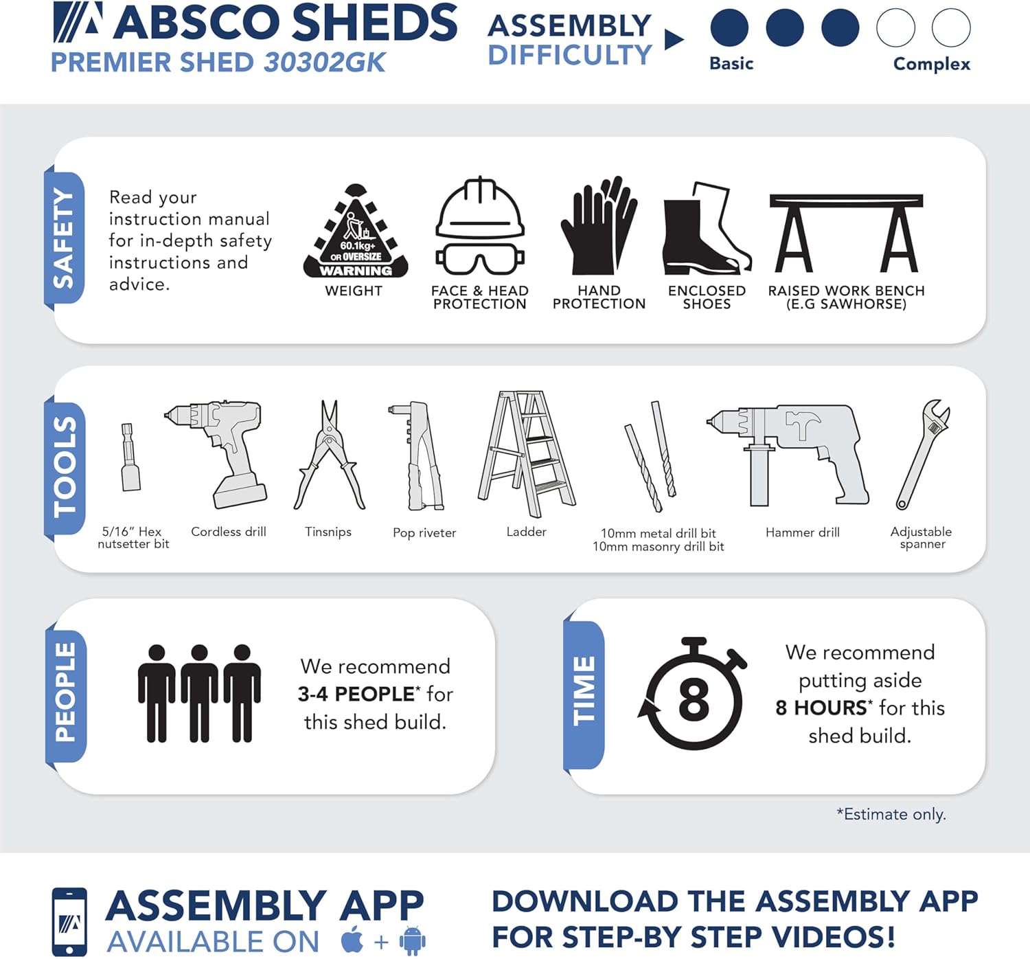 Absco Premier Storage Sheds, 10'x10' Metal Garage, DIY Backyard Shed, Utility Tool Storage, Weather & Wind Resistant Aluminum Panels & Steel Frame, Maintenance-Free, 12 Year Warranty, Woodland Gray