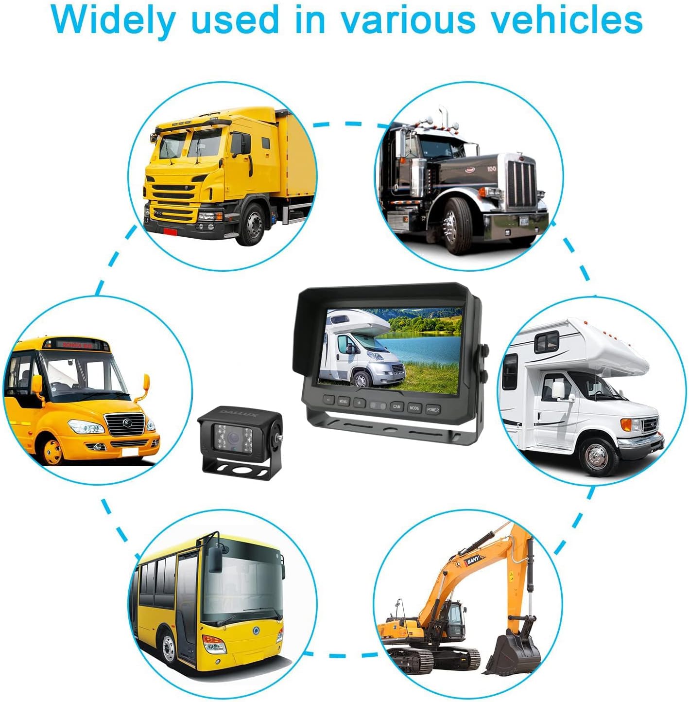 DALLUX Heavy Duty Vehicle Truck Bus Backup Camera System,Waterproof Night Vision Rear View Camera with 7 inch Monitor+66ft 4 PIN Camera Cable for Bus Truck Van Trailer RV Campers Motor Home(12V 24V)