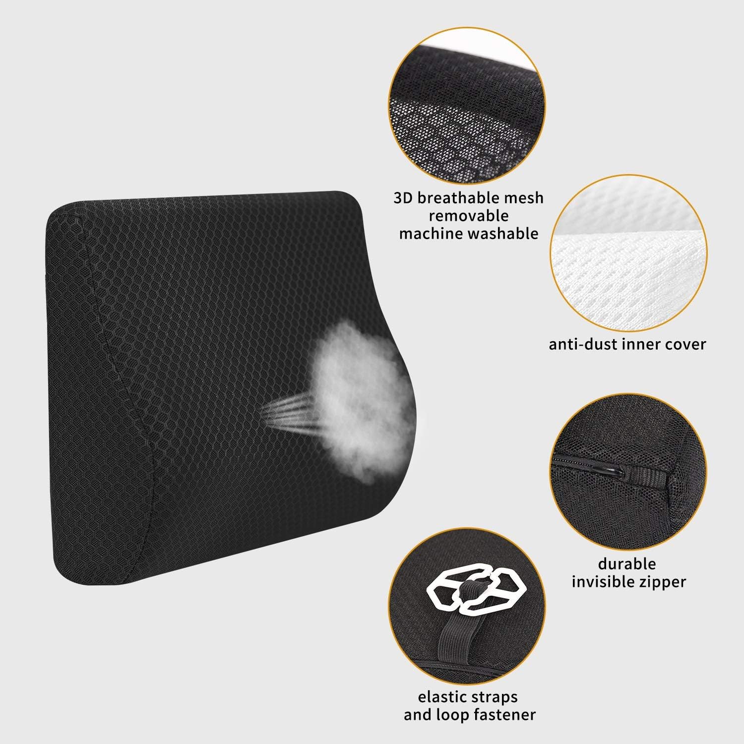 - Features: 3D breathable mesh cover can keep air flowing, to keep you cool and comfortable all day. Durable invisible zipper design for easy removal and cleaning. Easily adjust the optimal support position