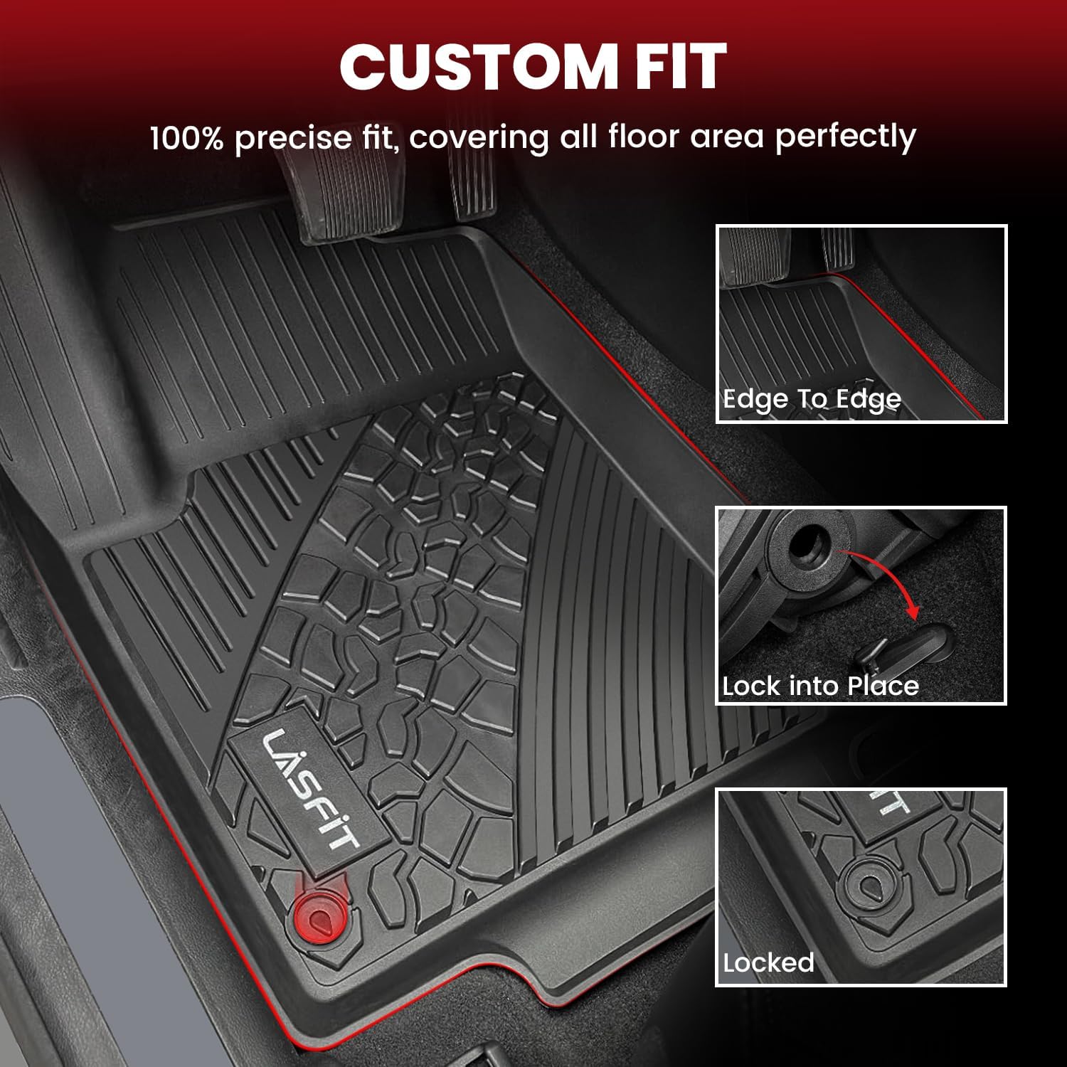 LASFIT Floor Mats for Jeep Cherokee 2015-2023 (Not Fit with Raised Dead Pedal) All Weather TPE Custom Fit Car Mats Floor Liners 1st & 2nd Row, Black