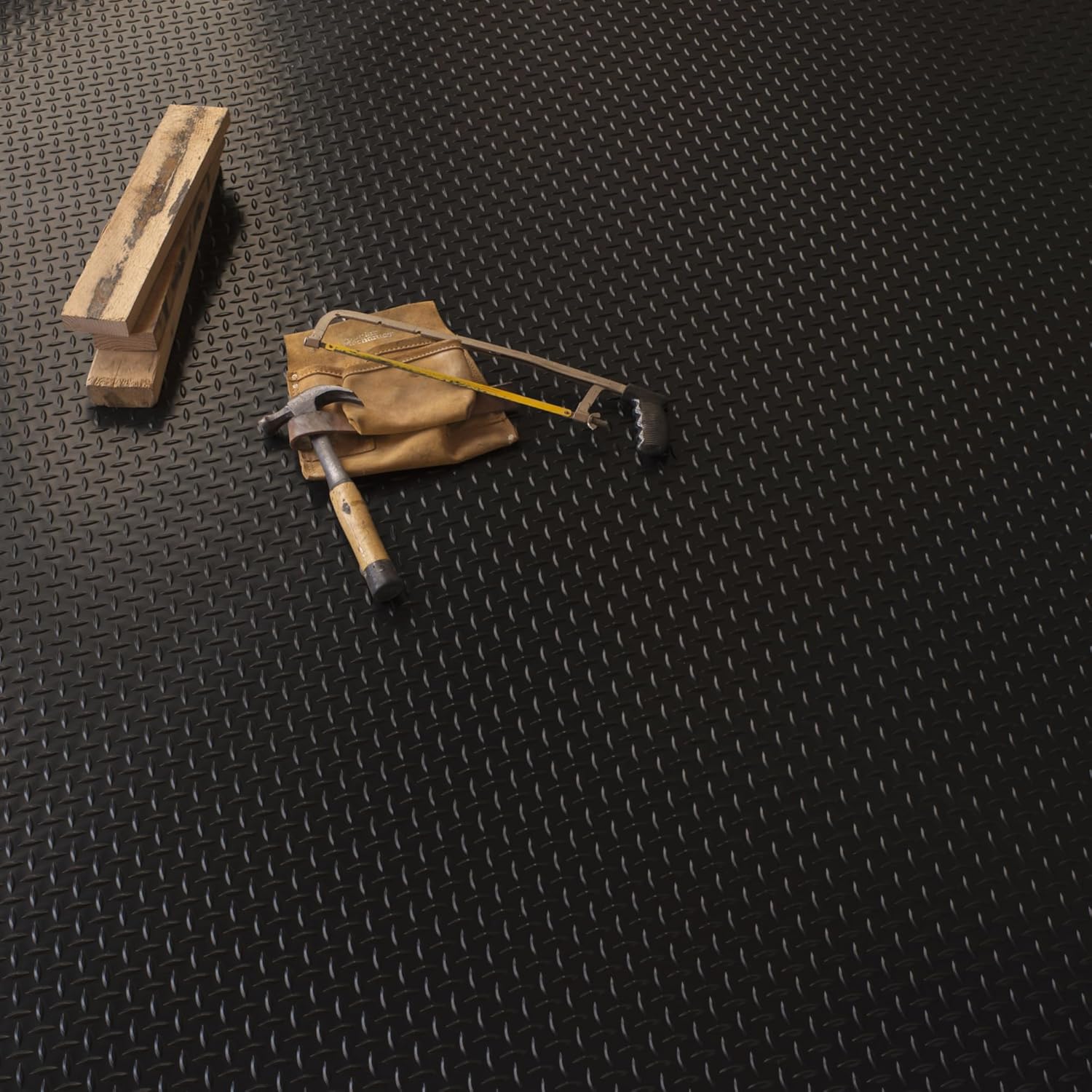 G-Floor Lite Diamond Tread Pattern Midnight Black Vinyl Rollout Garage Flooring Protector Mat for The Garage and Beyond - 7'6" x 14' Size