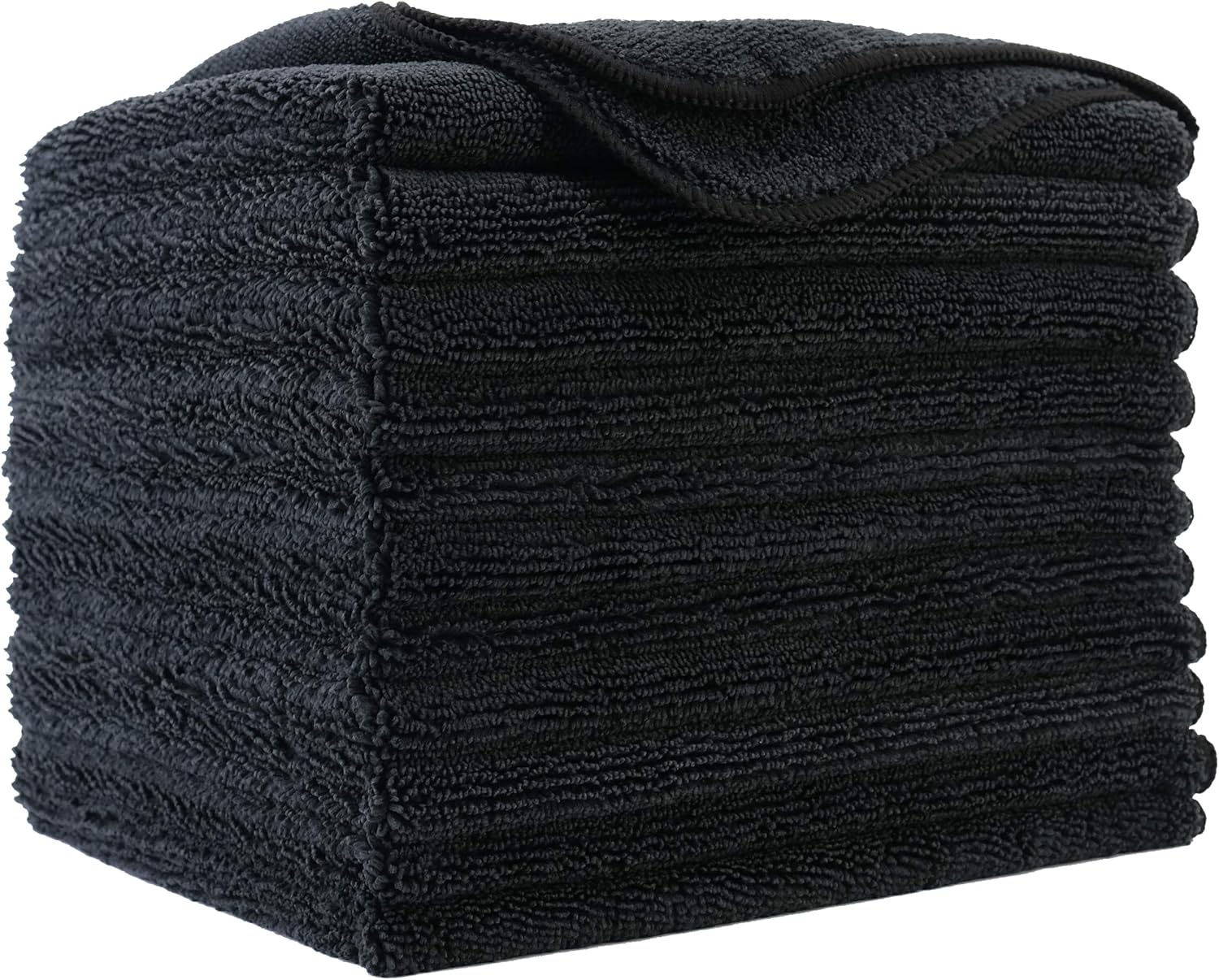 POLYTE Premium Microfiber Cleaning Towel,16 x 16 in, 12 Pack (Black)
