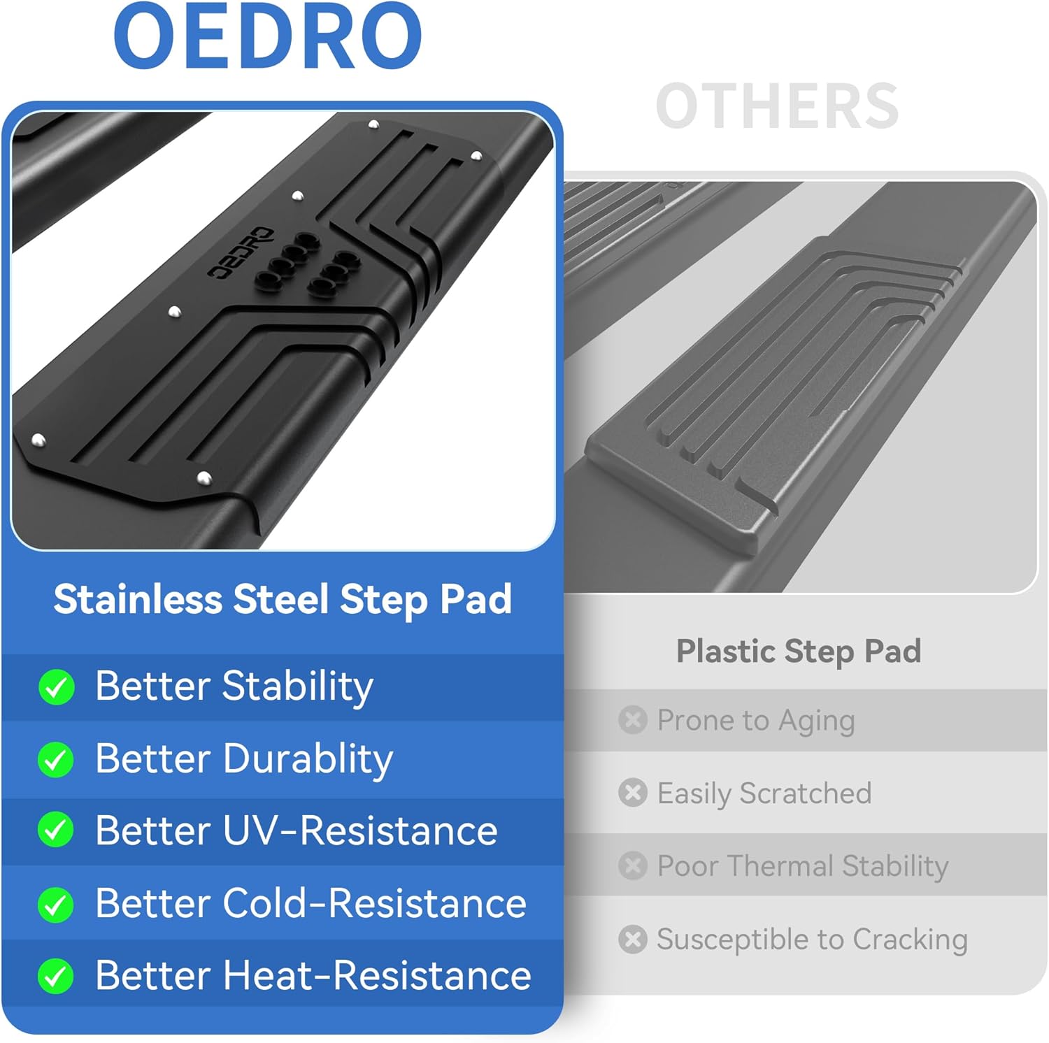 - Precise Compatibility: OEDRO running boards compatible with 2019-2025 Chevy Silverado/GMC Sierra 1500, 2020-2025 Silverado/Sierra 2500/3500 Crew Cab. (Please confirm the cab picture in the listing before ordering.)