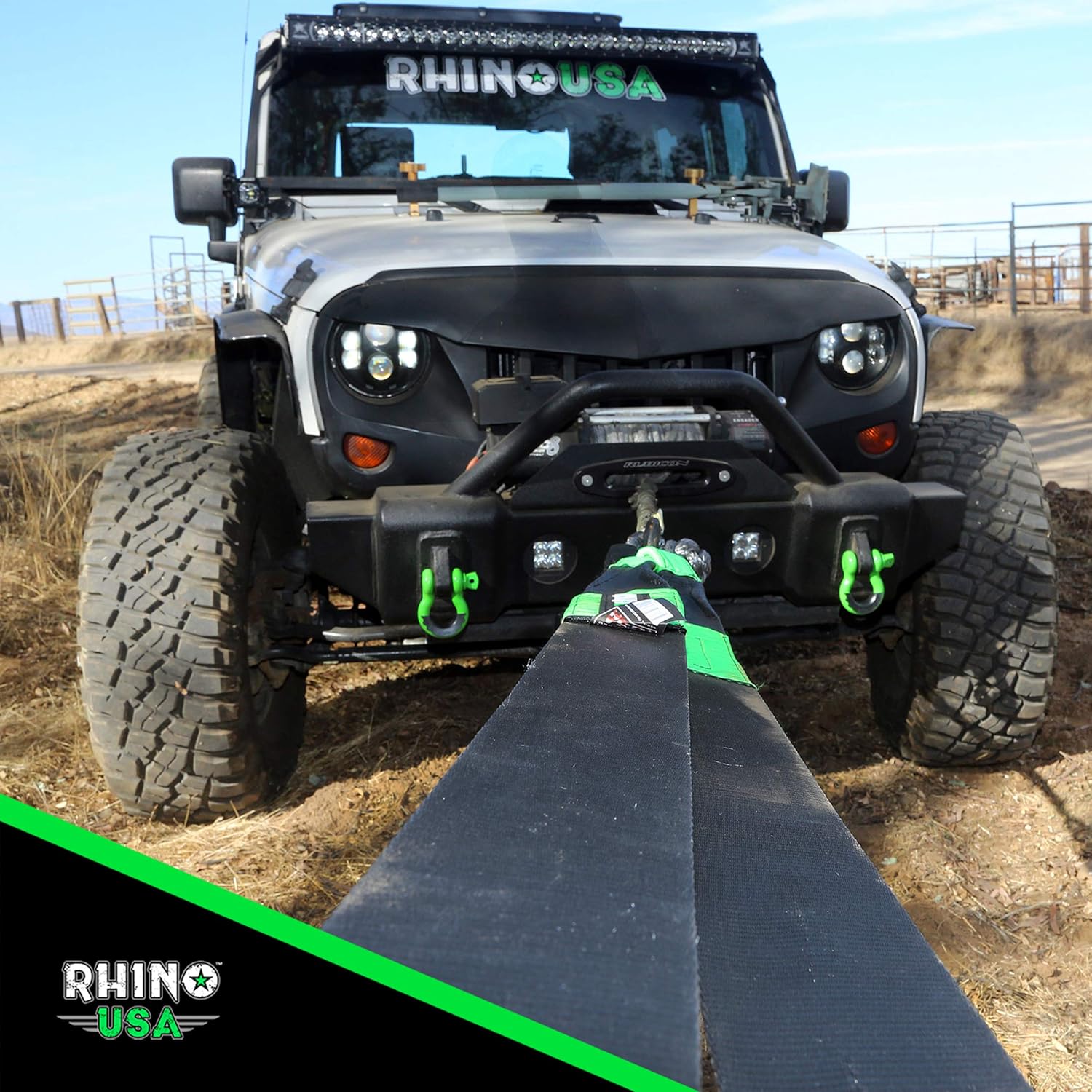 Rhino USA Recovery Tow Strap (4" x 30') - 40,320lb Break Strength - Emergency Recovery Strap Tow Rope for Diesel Trucks, Backhoe, Excavators & More - Heavy Duty Towing Strap for Offroad 4x4 Use