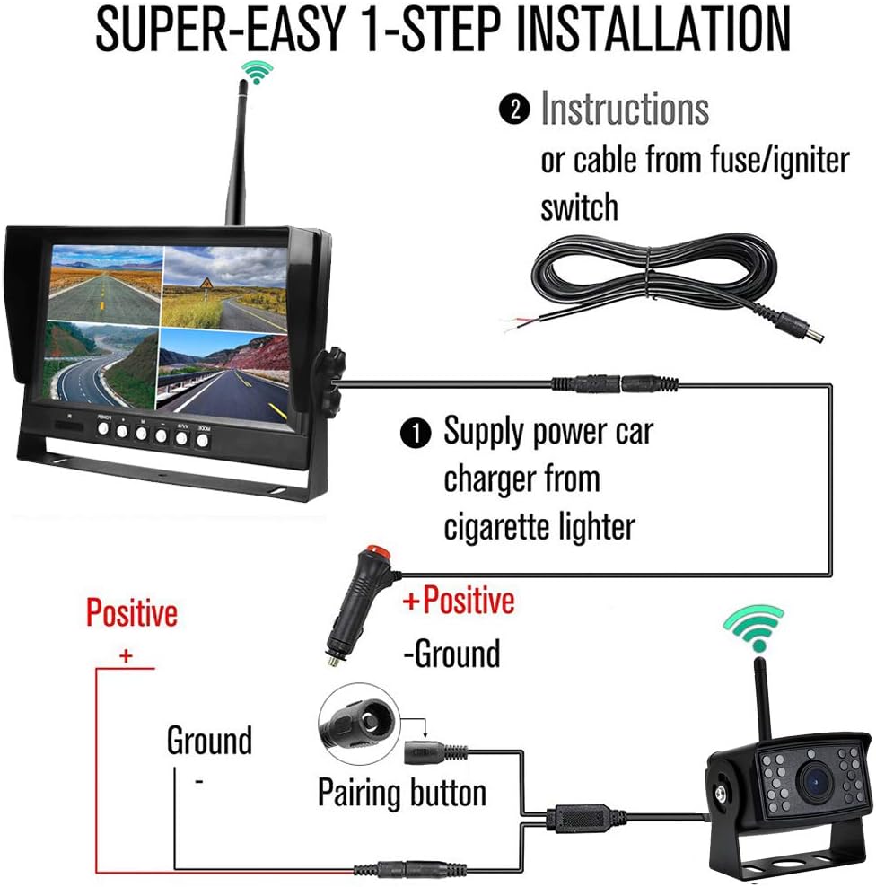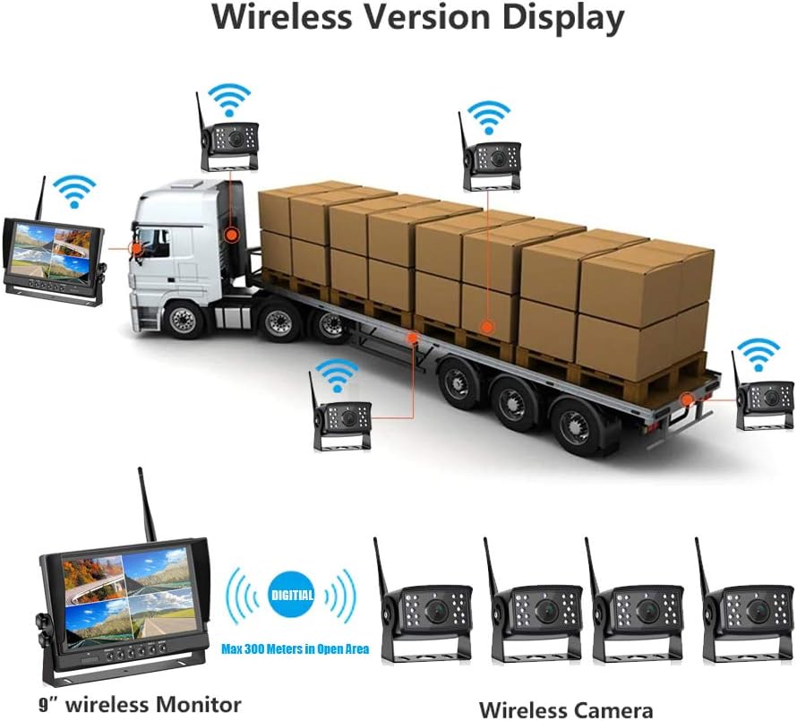 - 4PCS HD1080P CAR BACKUP CAMERAS: 18 Infrared Lights and HD 960P CMOS Sensor,Digital High definition Image Processor Will Present Superior Night Vision For You.Super IP69 Waterproof Standard.149Β° Wide View,Make Your Reversing More Confident and Safety, Please note you have to connect power for the cameras and the monitor.