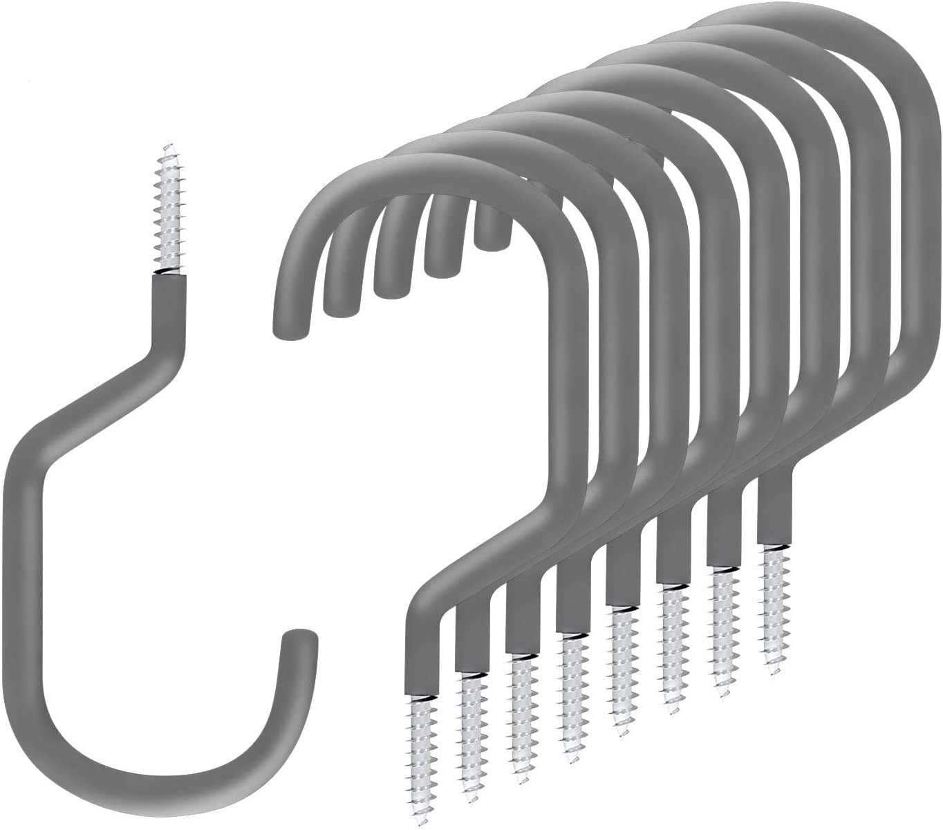 SMARTOLOGY 8 Pack Bike Hanger Storage Hook Rack, Heavy Duty Large Screw in Hooks for Garage Wall and Ceiling Bicycle Storage, Utility Tool Hanger (Gray)