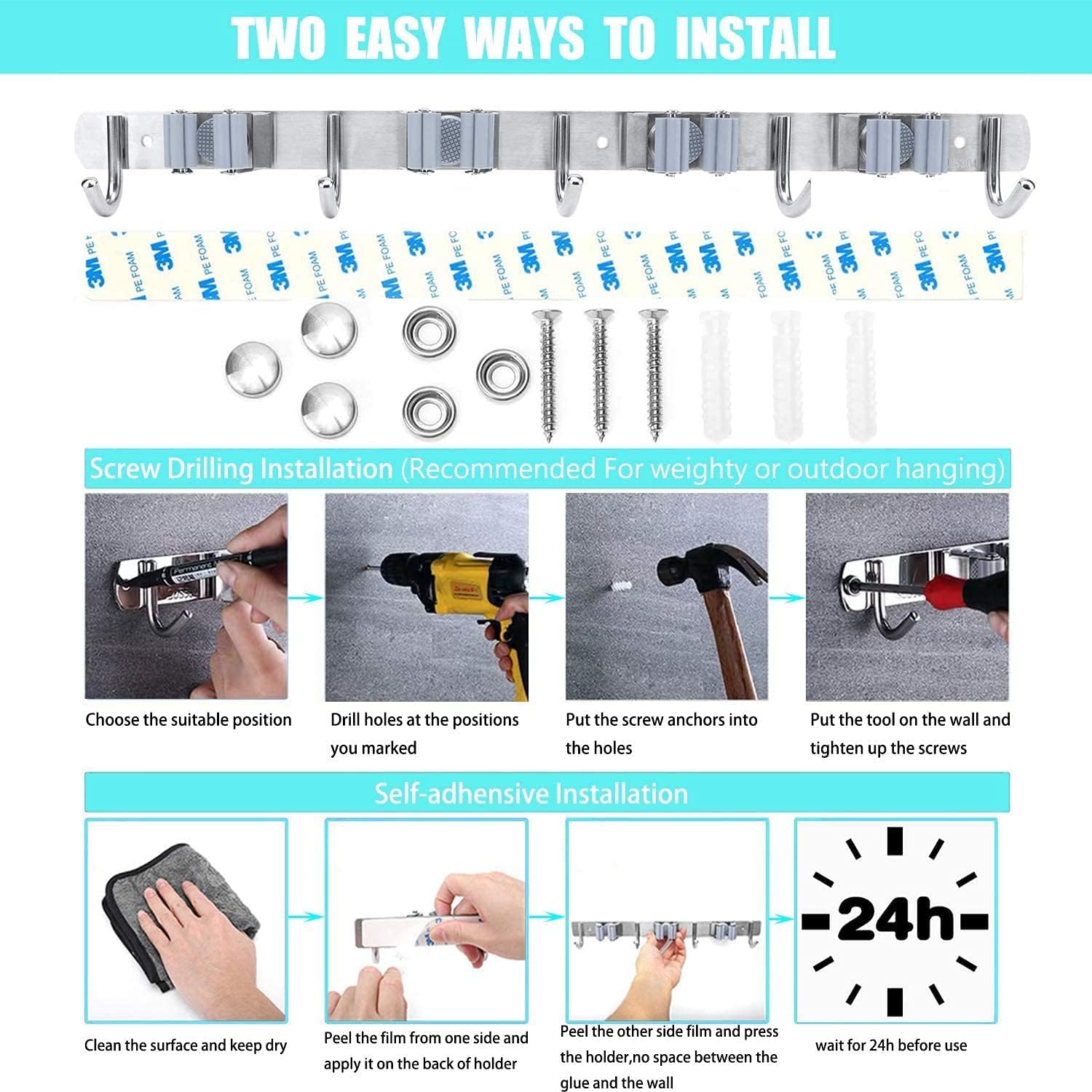 Broom Mop Holder Wall Mount Stainless Steel Tool Hanger Storage Organizer for Home, Kitchen, Garage, Garden, Laundry Room, Bathroom Organization and Storage(4 Racks 5 Hooks)