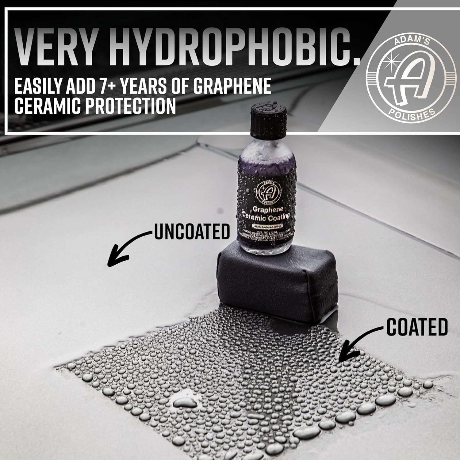 - ✅ EXPERIENCE THE POWER OF HYDROPHOBICITY with Adam's versatile Graphene Coatings! It creates a super slick and durable barrier against dirt, bonded contaminants, and water. It's safe on all finishes and reduces the chances of swirl marks and scratches during washing and drying.